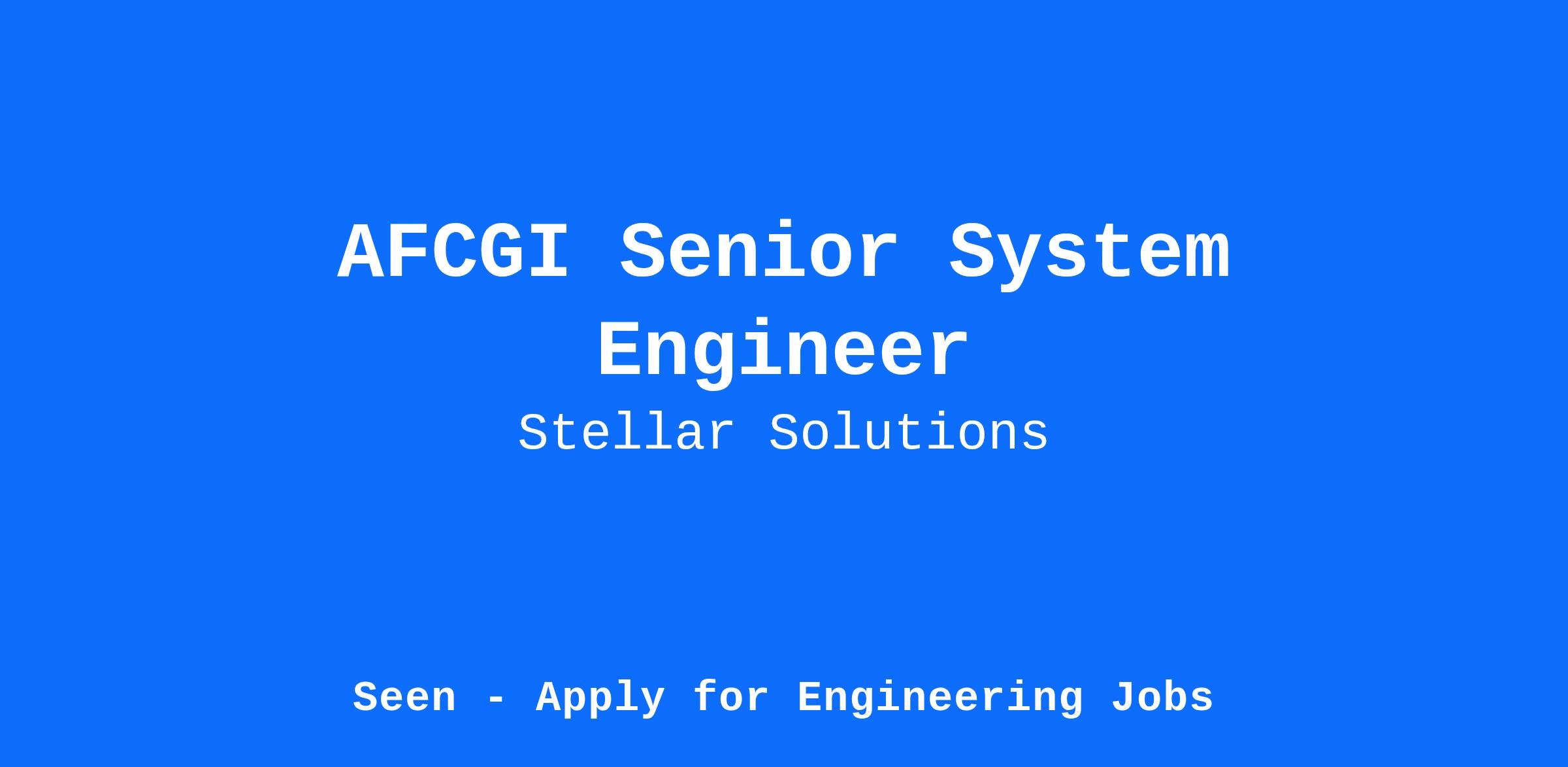 Stellar Solutions is searching for a Senior System Engineer to support the development of a ground infrastructure that supports and enables space and ground elements to prototype new satellite and tactical mission capabilities, demonstrating their scalability and operational utility.