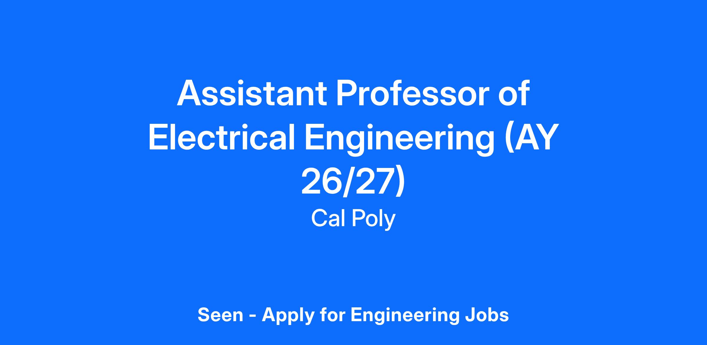 ELECTRICAL ENGINEERING TENURE-TRACK FACULTY POSITION - The Electrical Engineering Department in the College of Engineering at California Polytechnic State University in San Luis Obispo, California (Cal Poly) is excited to invite applications for a full-time, academic year, tenure-track faculty position at the Assistant Professor rank beginning Fall 2026.