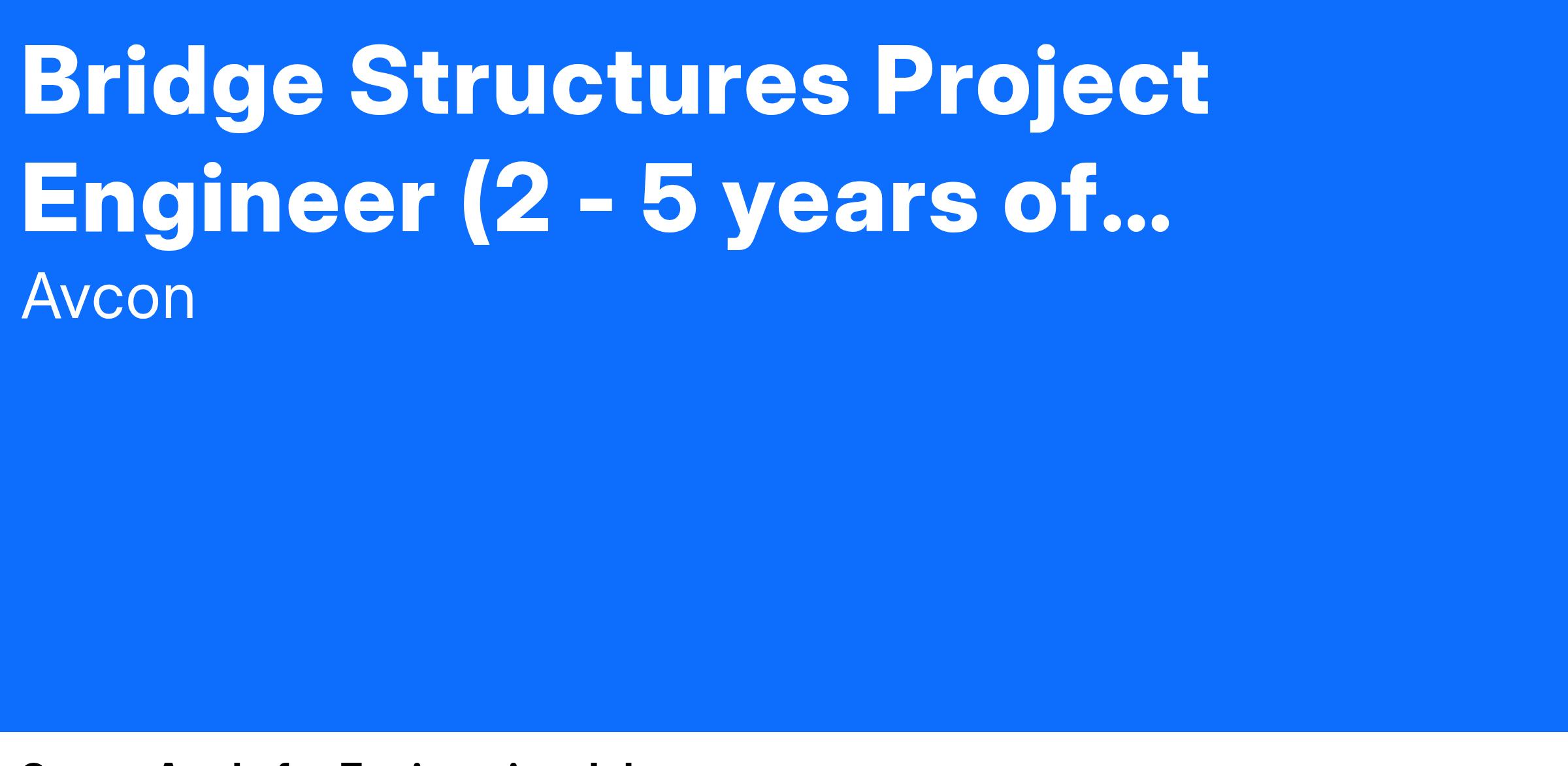 As part of a design team, the primary responsibilities of the Bridge Project Engineer are to assist with the design, evaluation, and rehabilitation of highway and pedestrian bridges; prepare constructions plans; generate engineering calculations and reports; project specifications; cost estimates; and provide engineering oversight during construction. This position is based in AVCON's Orlando, Florida office.