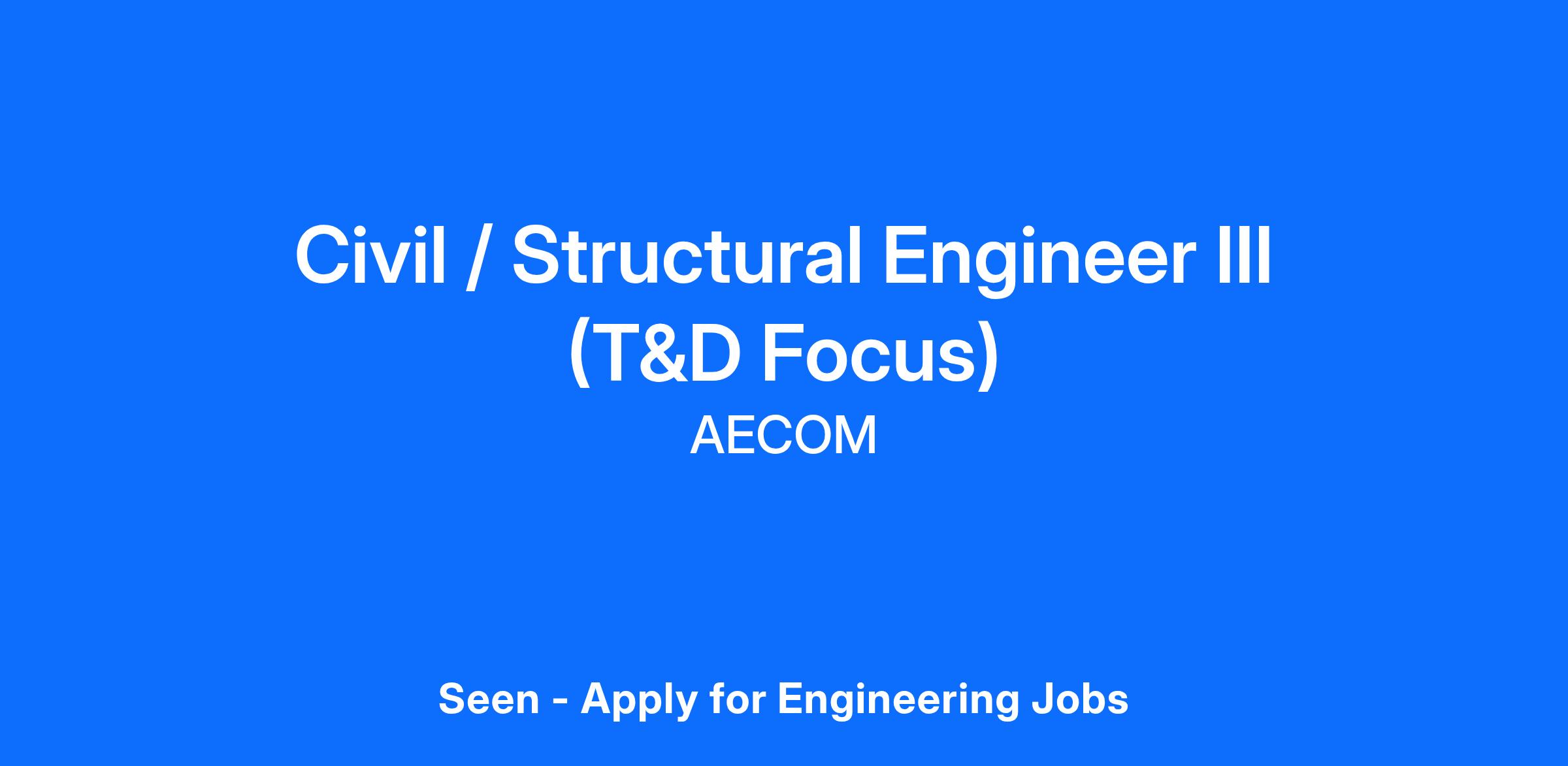 AECOM is hiring for a Civil / Structural Engineer with a primary focus on Transmission and Distribution projects to support our growing Energy Business Line.
