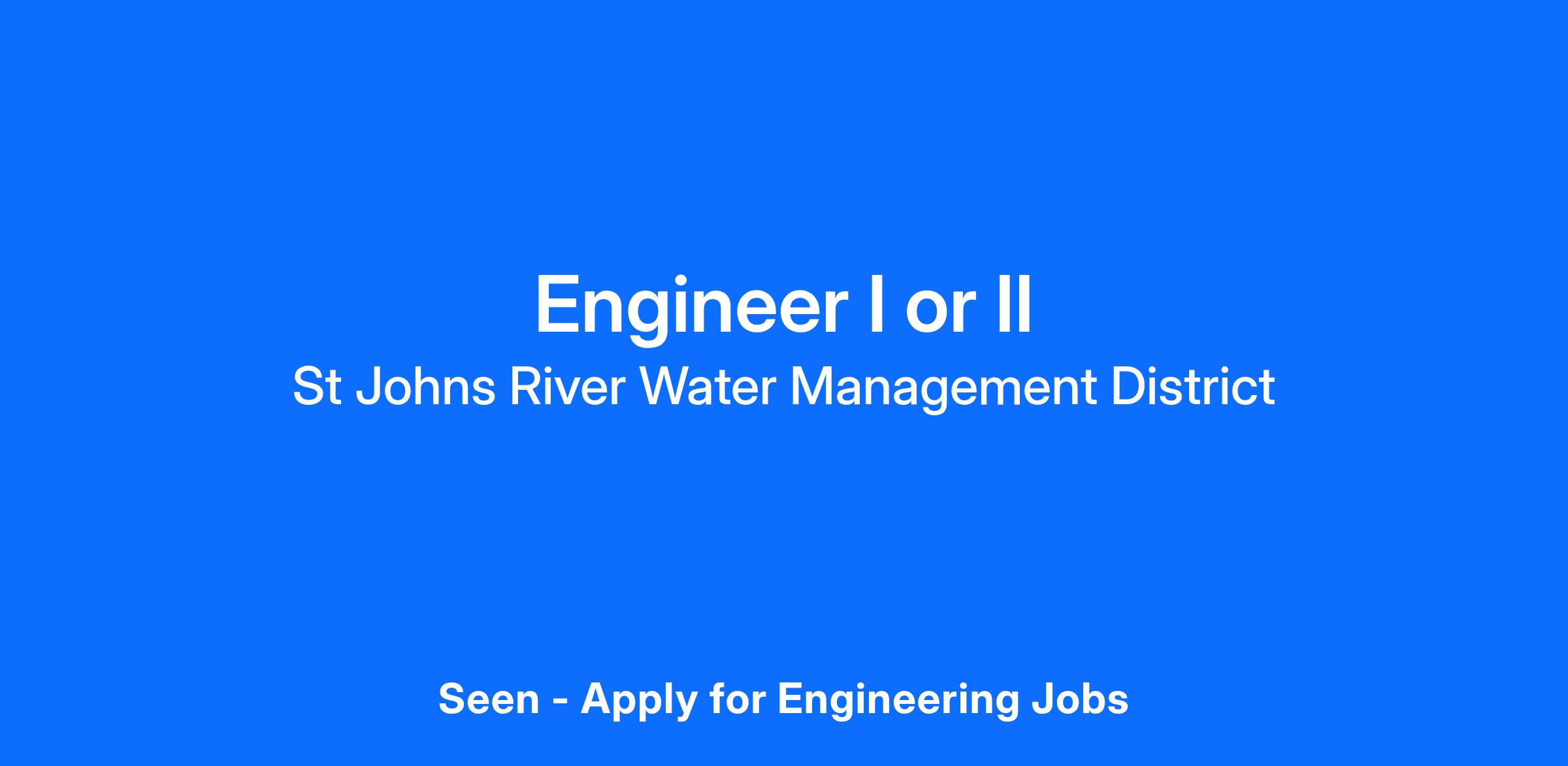 Engineer II – requires a bachelor's degree from an accredited college or university in environmental, civil, hydraulic, agricultural, water resource engineering or closely related field, and two years engineering experience directly related to the field in which the position is assigned.