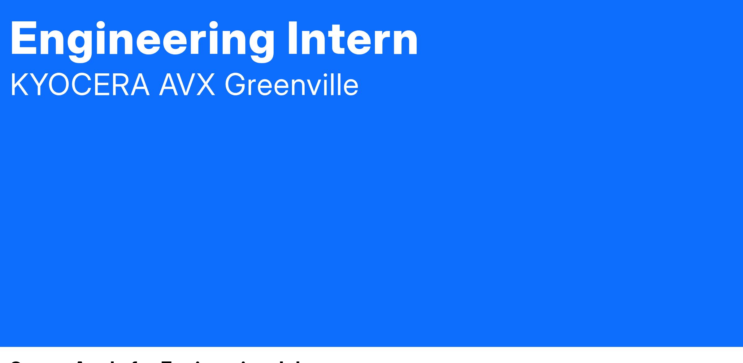 Kyocera-AVX is an Equal Opportunity Employer: All qualified applicants will receive consideration for employment without regard to race, color, religion, sex, sexual orientation, gender identity, national origin, disability, or status as a protected veteran.