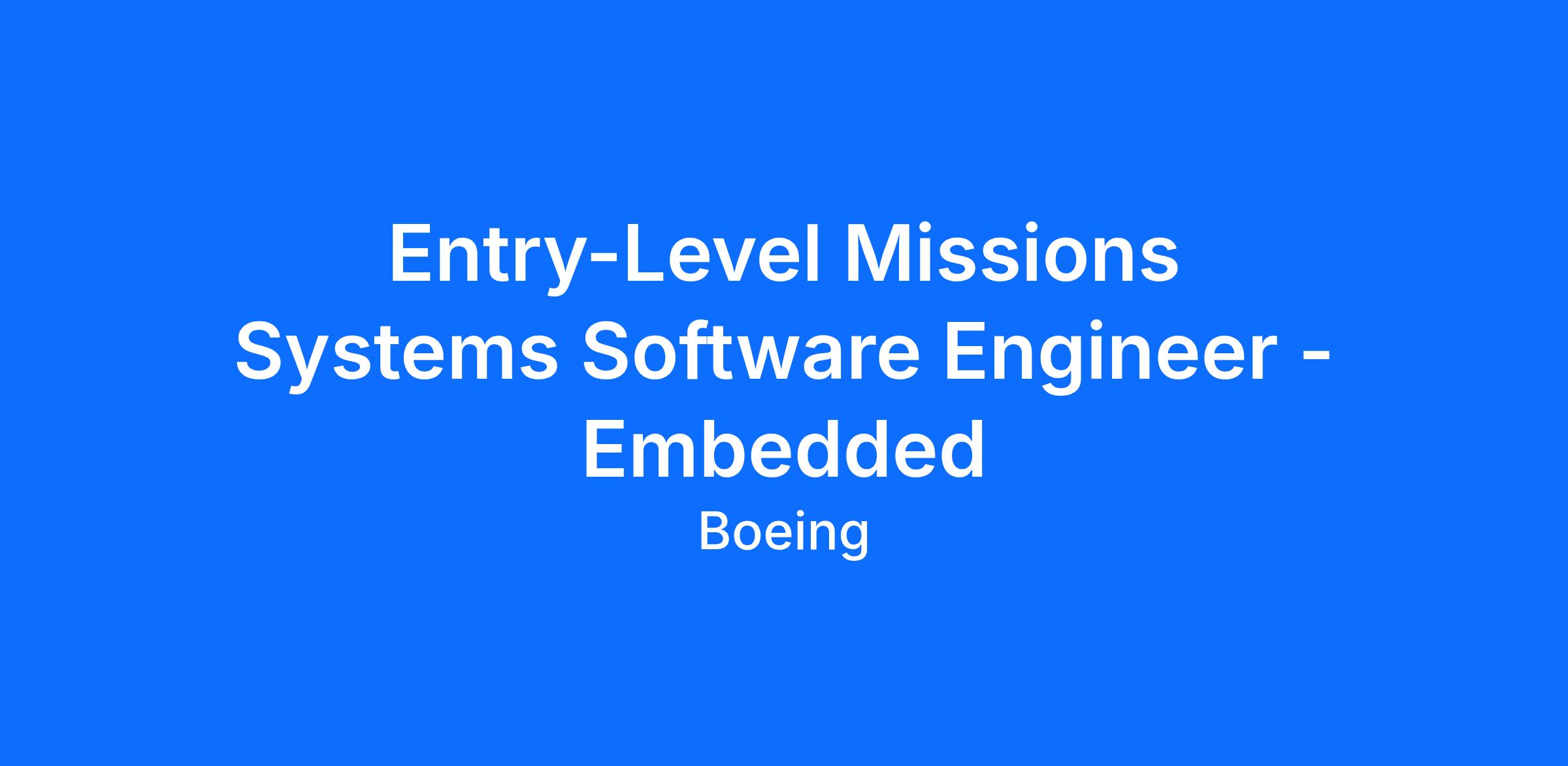 The Boeing CompanyThe Boeing Company is looking for an Entry-Level Missions Systems Software Engineer - Embedded to join the Boeing’s Mission Systems Software team in Berkeley, Missouri.