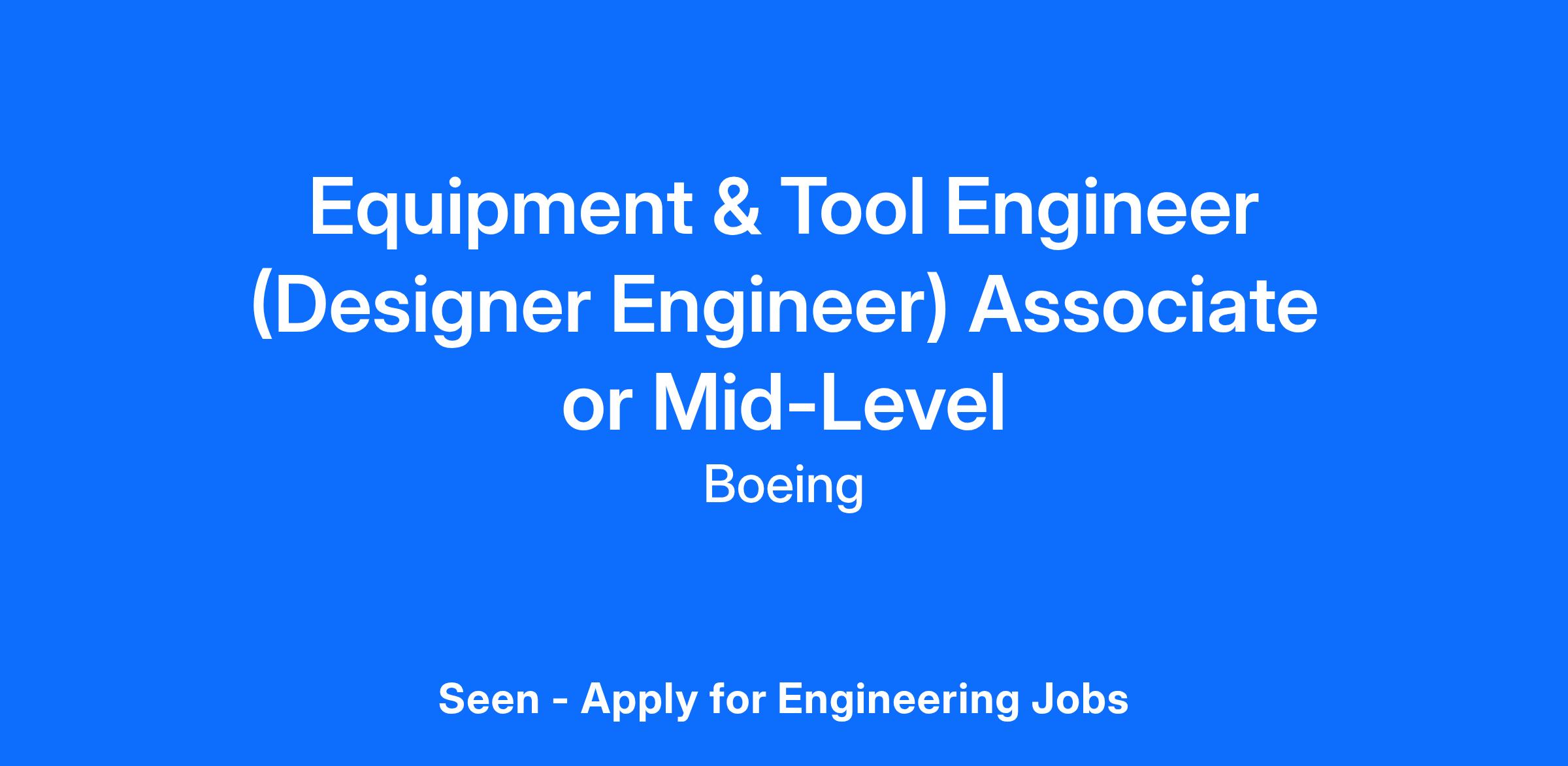 The Boeing CompanyBoeing Commercial Airplanes is seeking an Associate or Mid-Level Tool Engineer to support our teams at Boeing Salt Lake, UT.