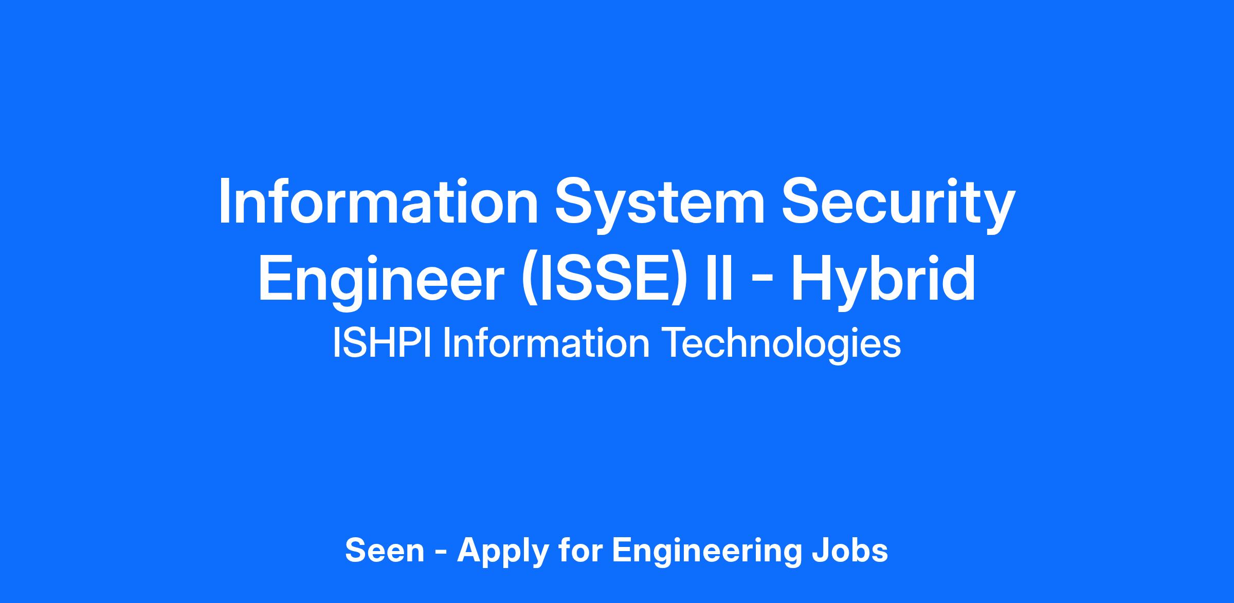 “Ishpi Information Technologies, Inc. is an Equal Opportunity Employer. All qualified candidates will be considered without regard to legally protected characteristics.
