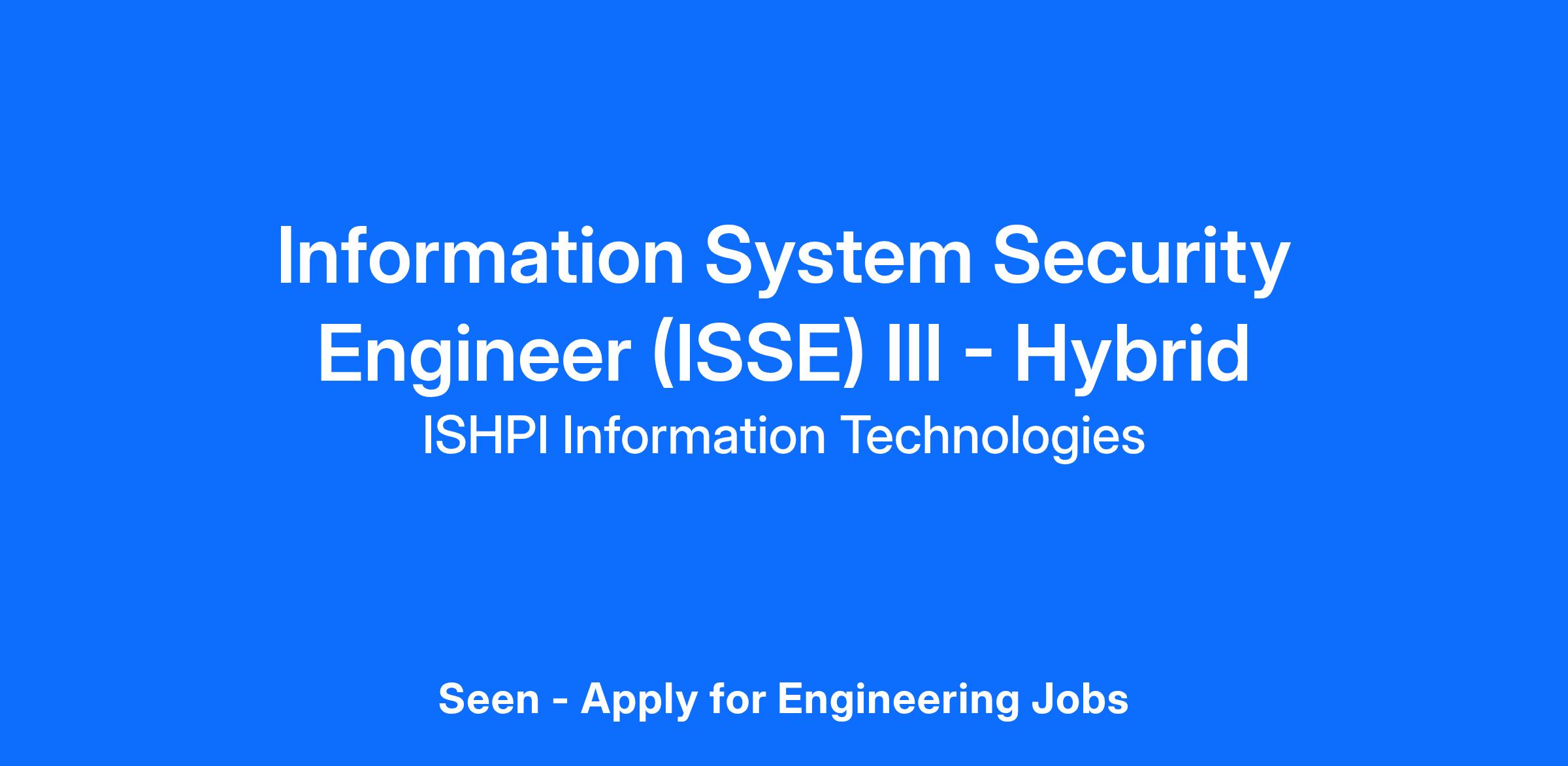The ISSE III will provide support to the Naval Surface Warfare Command in Philadelphia, PA. Shall provide cybersecurity support for the Code 104 Information Technology Operations Division in the area of Information System Security Engineer (ISSE) support. These duties include but are not limited to: