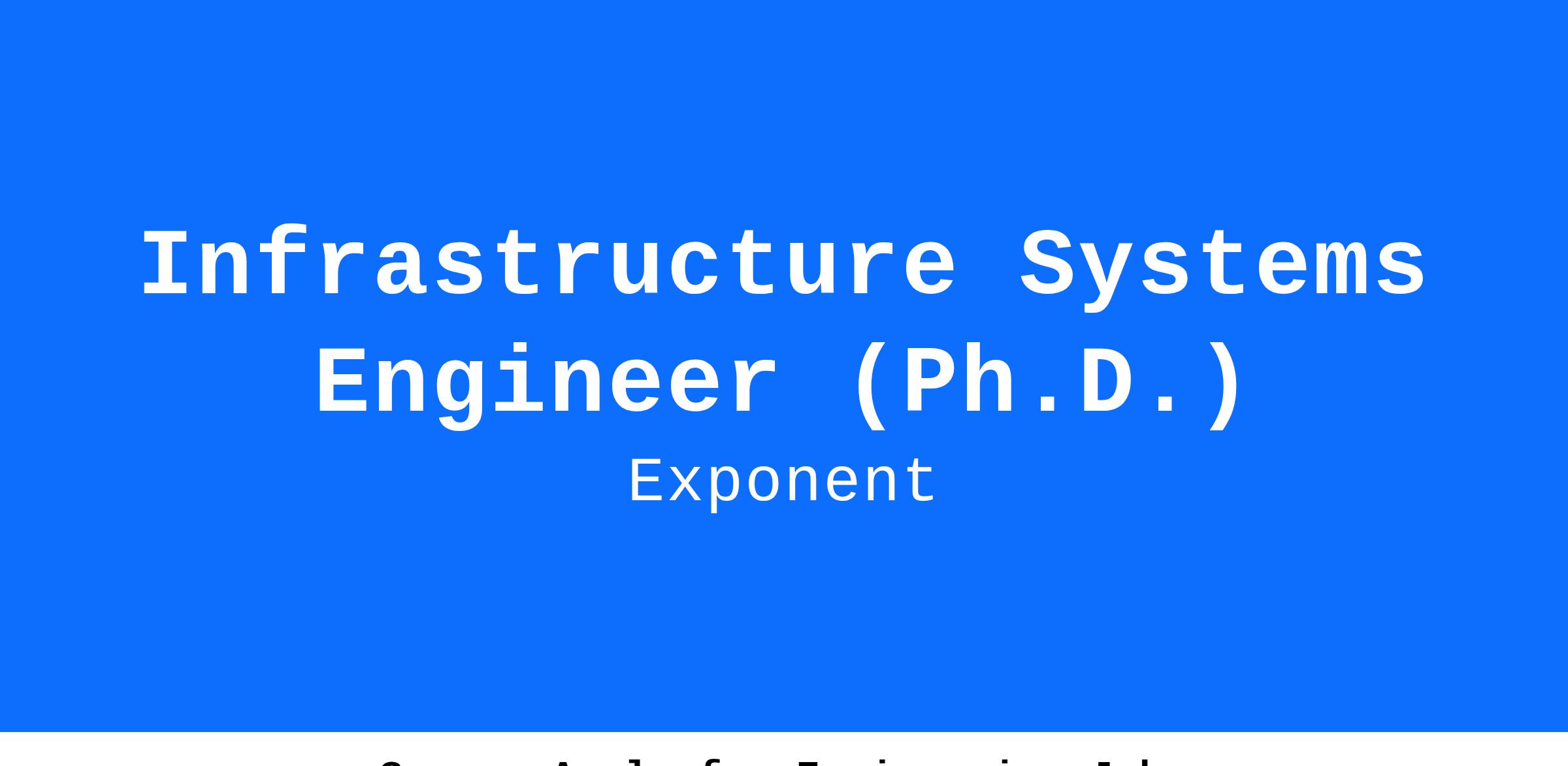 Exponent is a proud equal opportunity employer. All qualified applicants will receive consideration for employment without regard to race, color, religion, sex, national origin, veteran status, disability, sexual orientation, gender identity, or any other protected status.
