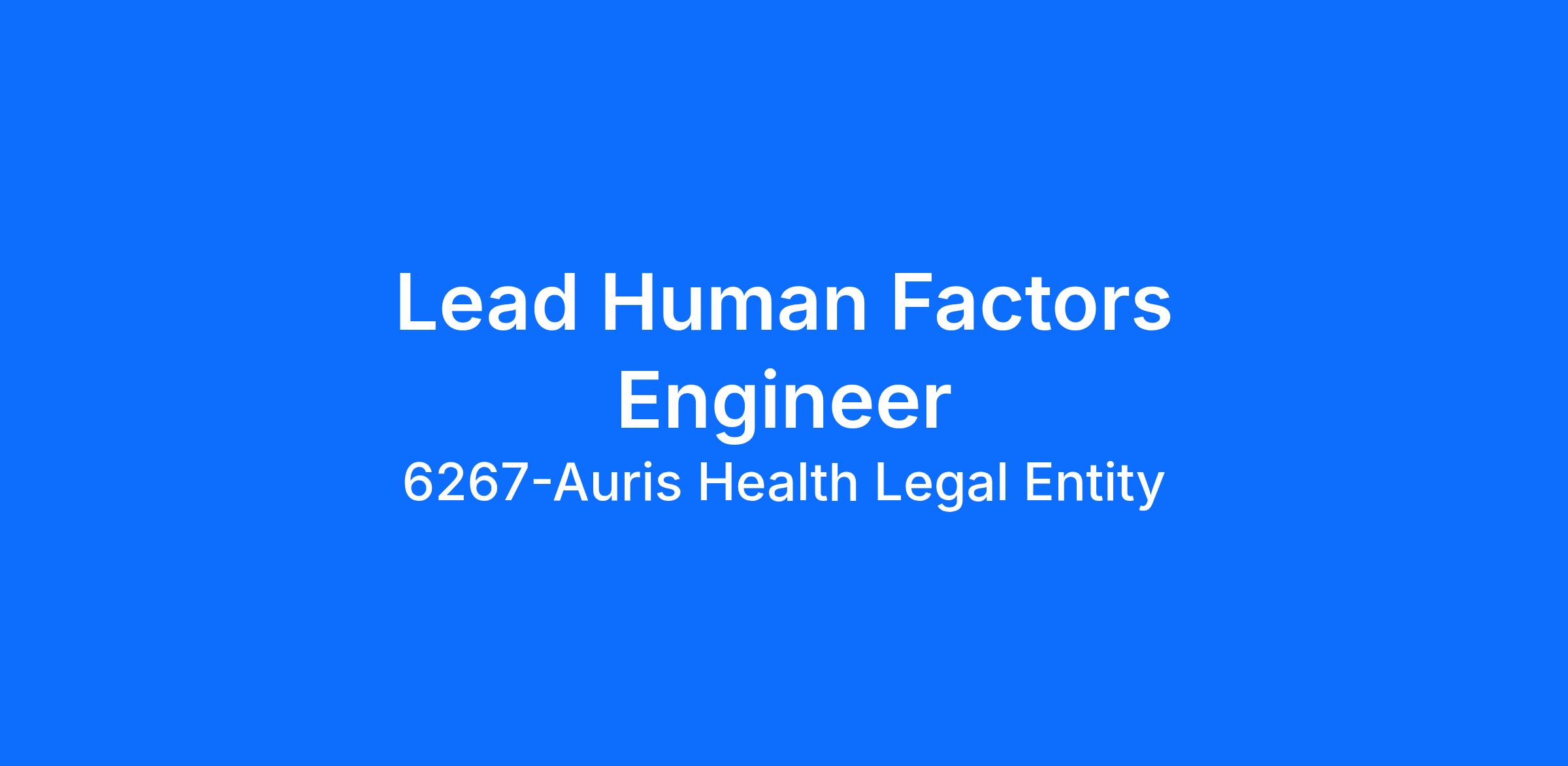 As a Lead Human Factors Engineer, you will be responsible for running sophisticated HF workstreams as the primary individual contributor along with providing mentorship, review, and leadership across a broad range of HF workstreams. You'll bring experience and creativity that will help our team navigate interesting questions and challenges in the world of medical robotics. Our collaborative culture heavily emphasizes growth and development and you'll help mentor and develop HF talent to help continually set a high standard for the team.