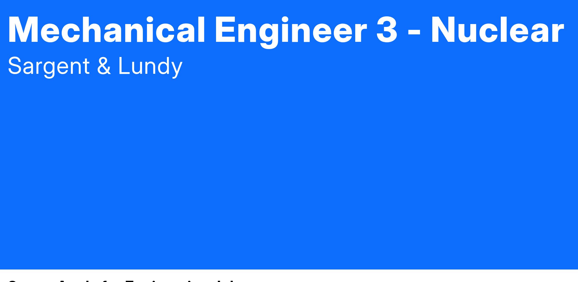 Join Sargent & Lundy's Nuclear Power Group and be part of a team driving the future of clean, carbon-free energy. Since 1954, we’ve been a trusted leader in nuclear engineering, design, and licensing, with expertise spanning small modular reactors (SMRs), advanced reactor technology (ART), and first-of-a-kind commercial reactor restart projects. Our work supports life extensions and digital modernization of existing nuclear plants, coal-to-nuclear conversion initiatives with the Department of State, and international nuclear new-build projects. With a commitment to safety, innovation, and sustainability, we provide cutting-edge solutions that power communities worldwide while reducing emissions. Shape the future of global energy with us!