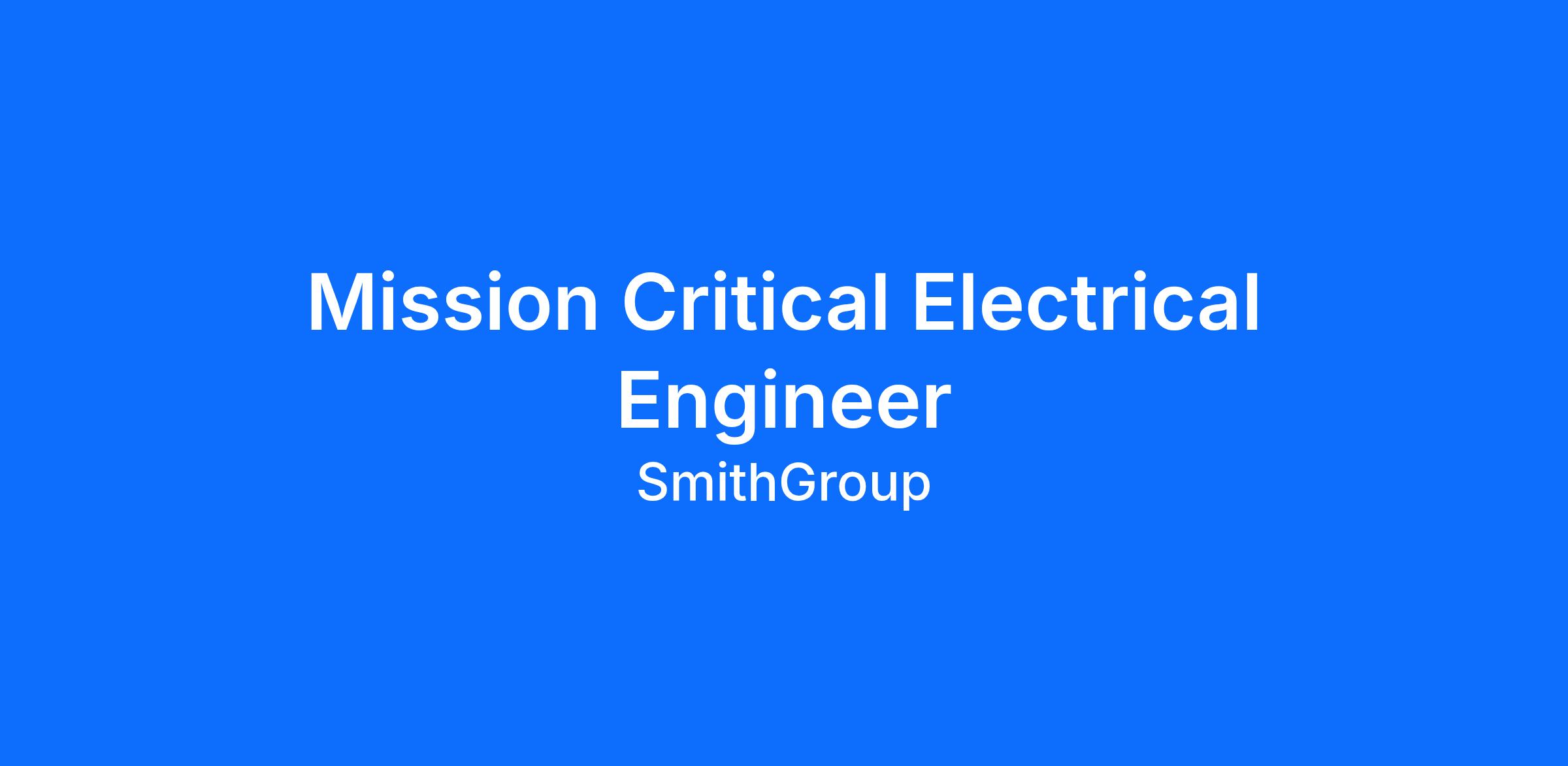 The Pittsburgh office of SmithGroup is looking for a Mission Critical Electrical Engineer to join our team.