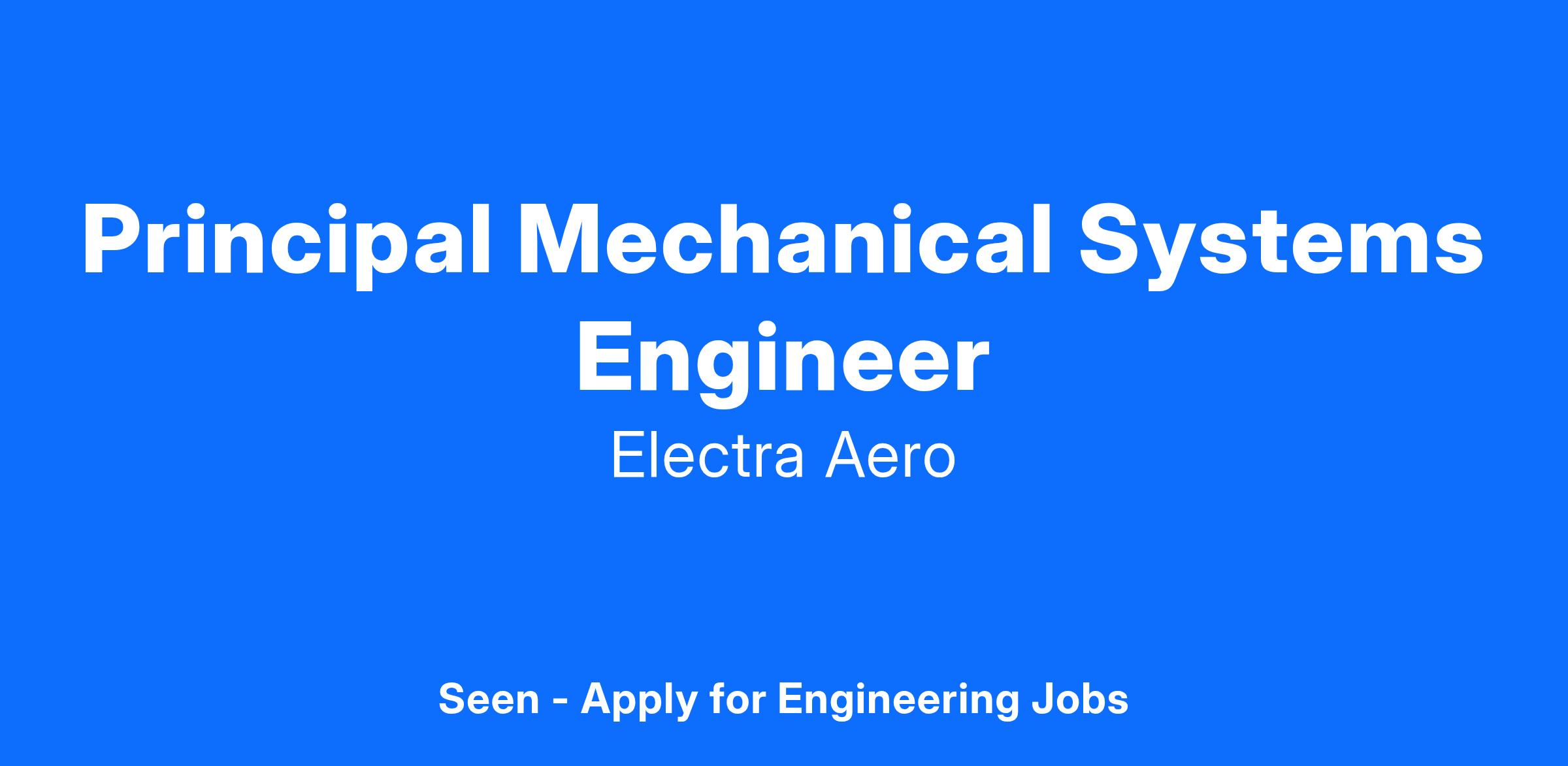 Electra is seeking a Principal Mechanical Systems Engineer to lead design, development, and integration of mechanical systems on Electra's EL9 Ultra Short aircraft. This role will work with cross functional teams (including suppliers) to ensure the mechanical systems meet safety, performance, and regulatory standards. This is an incredible opportunity to make a direct impact on a cutting-edge development program.