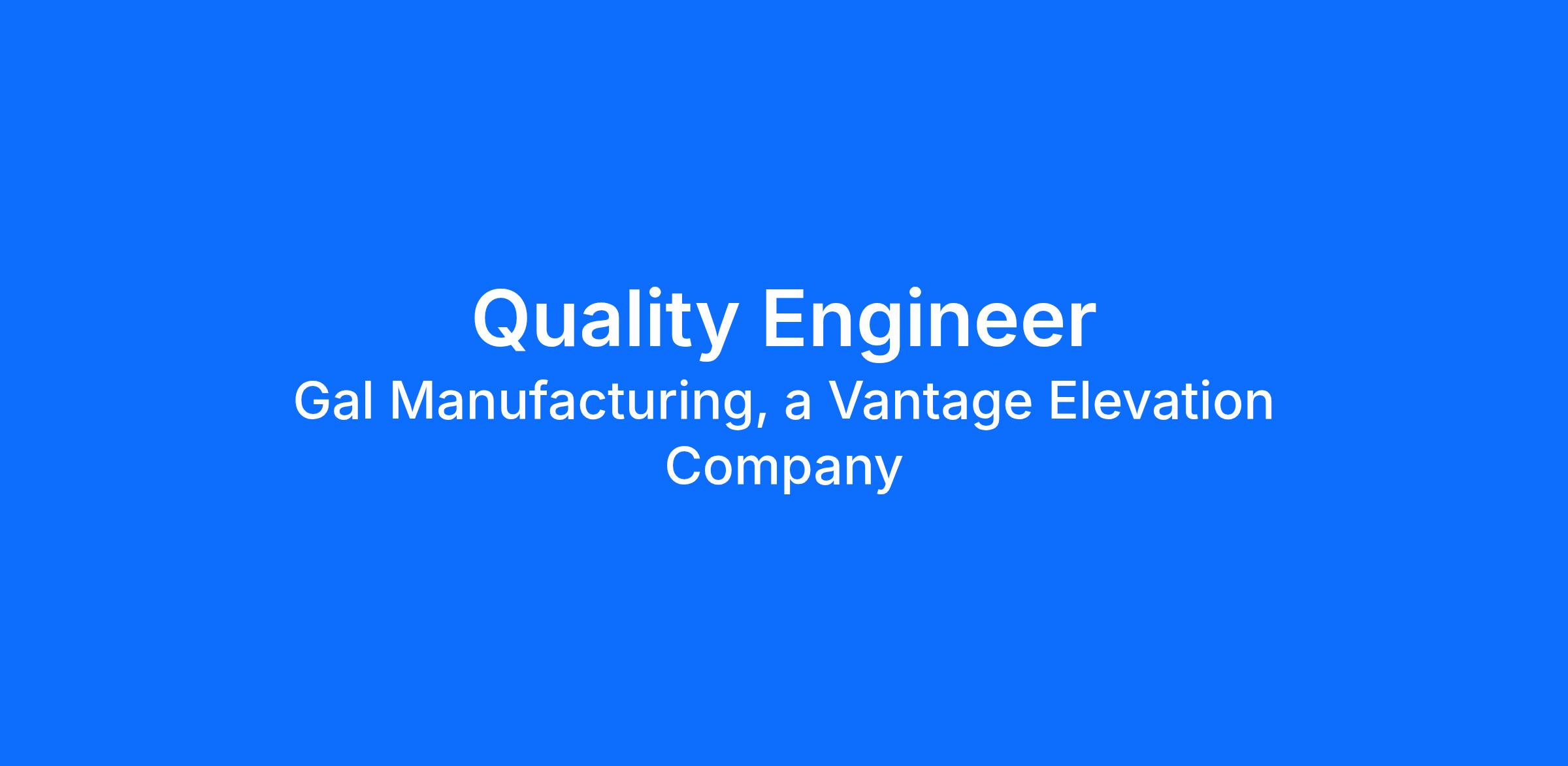 If you’re excited by the prospect of supporting manufacturing operations and contributing to a world-class employer, then we invite you to apply for the Quality Engineer position at Vantage Elevation, LLC.
