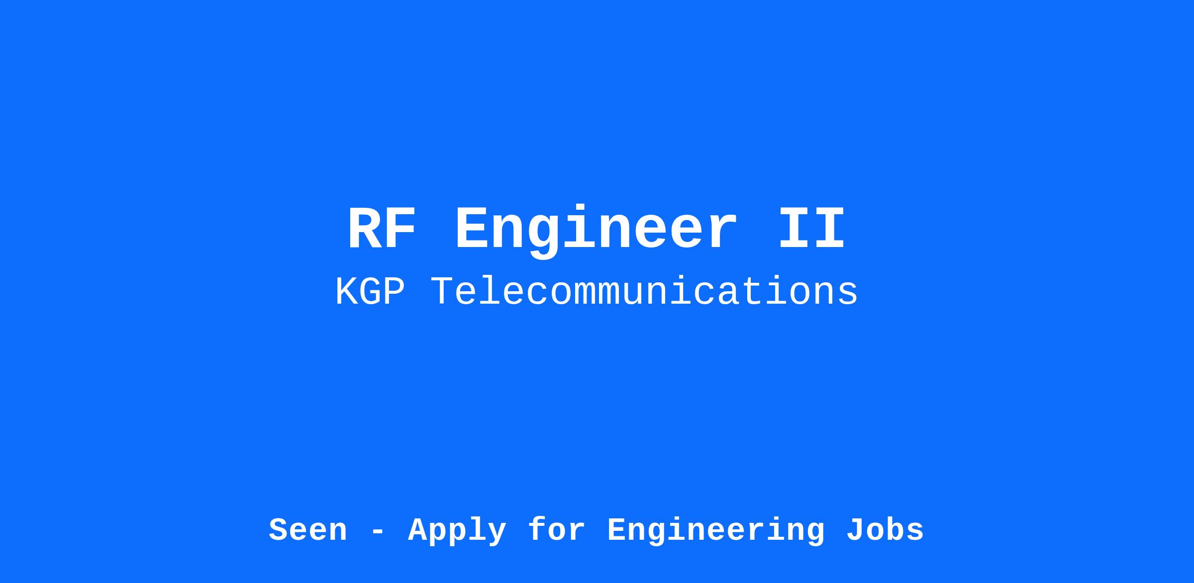 Summary: RF Engineer II is a mid-level engineering professional who specializes in design and optimization as well as develops radio frequency (RF) systems and components. The work will be under the supervision of senior engineers to design and develop RF systems and may also provide guidance to junior engineers.
