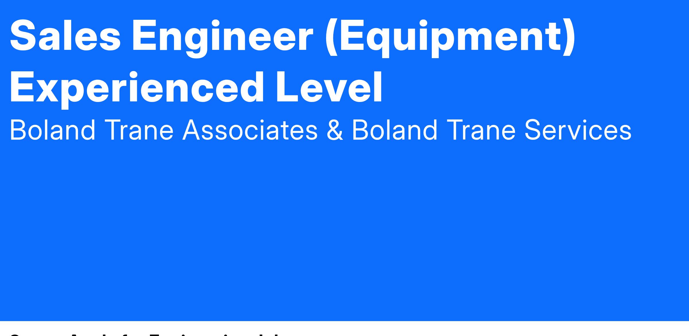 Sales Engineer (Equipment) Experienced Level: Responsible for working with engineers and contractors in the design, application and sale of HVAC systems for commercial, industrial and institutional buildings, and developing and maintaining long term relationships with our clients.