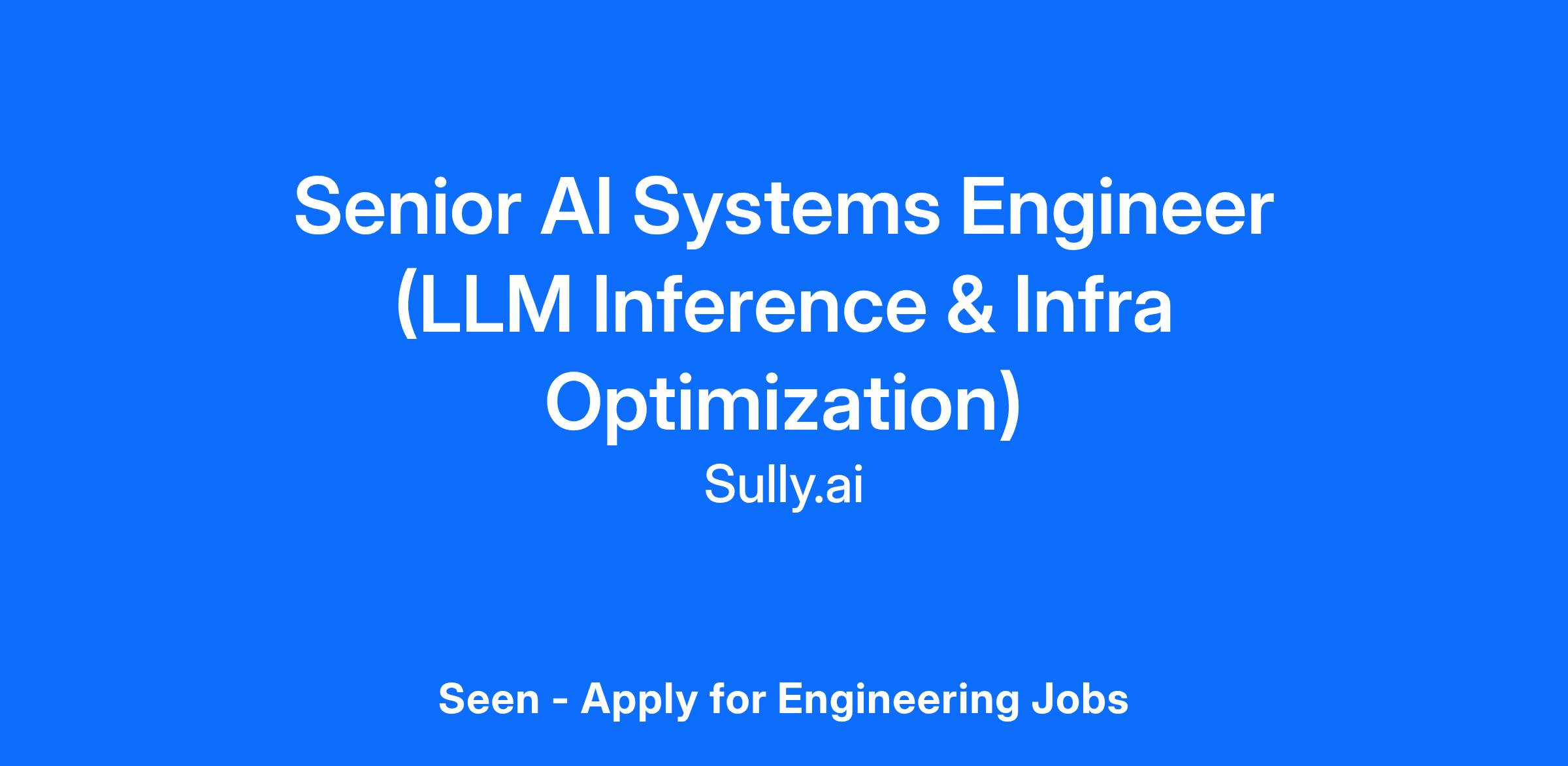At Sully.ai, we’re building cutting-edge AI-native infrastructure to power real-time, intelligent healthcare applications. Our team operates at the intersection of high-performance computing, ML systems, and cloud infrastructure — optimizing inference pipelines to support next-generation multimodal AI agents. We're looking for a deeply technical engineer who thrives at the systems level and loves building performant, scalable infrastructure.