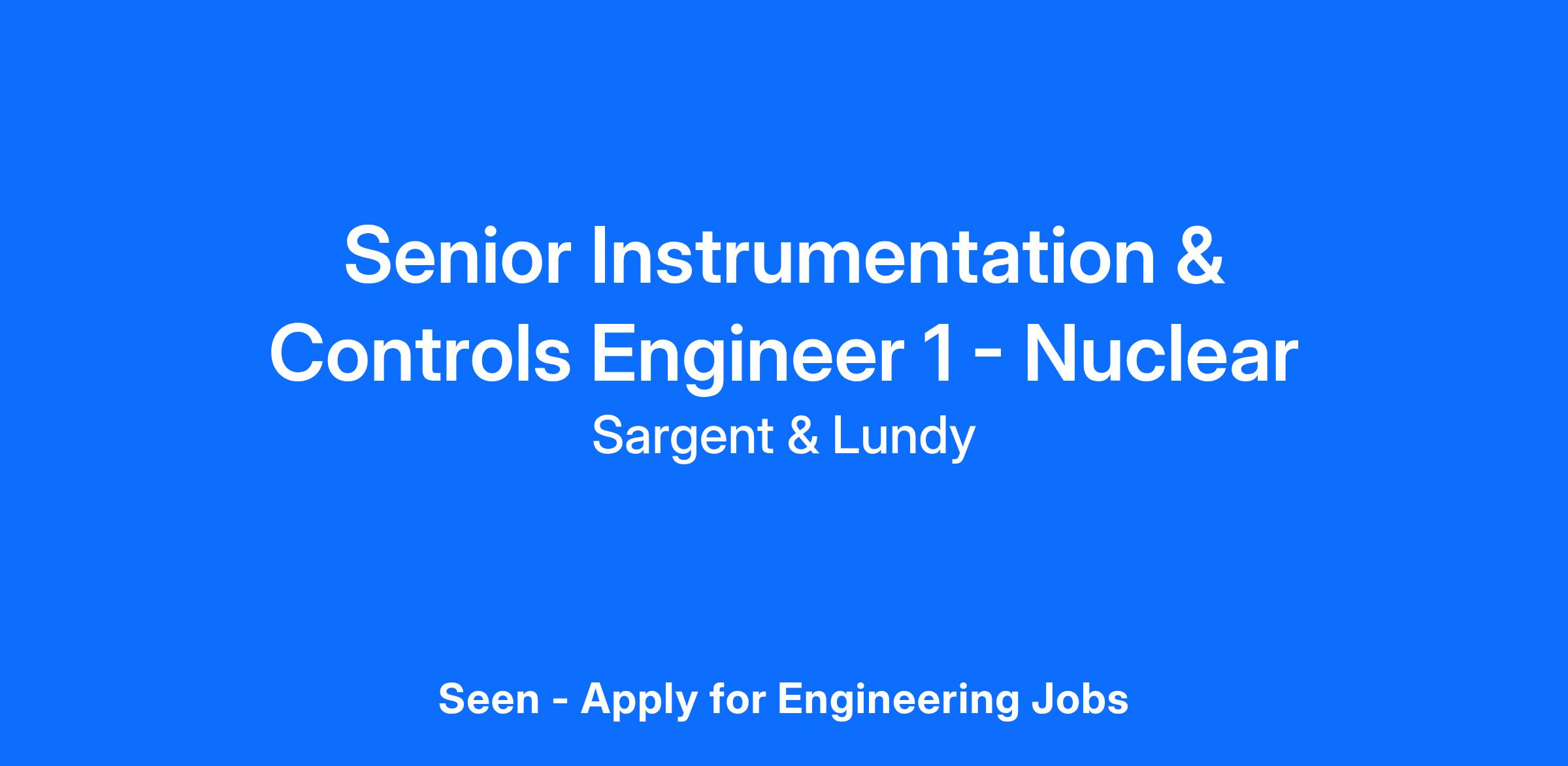 Nuclear Power is a carbon-free energy source. Our nuclear power generation clients are digitizing their existing power plants and building new nuclear power plants, small modular reactors (SMR). This is expanding work in the Instrumentation and Controls Engineering group. Due to this influx of work, Sargent & Lundy has a need for several I&C Engineers.