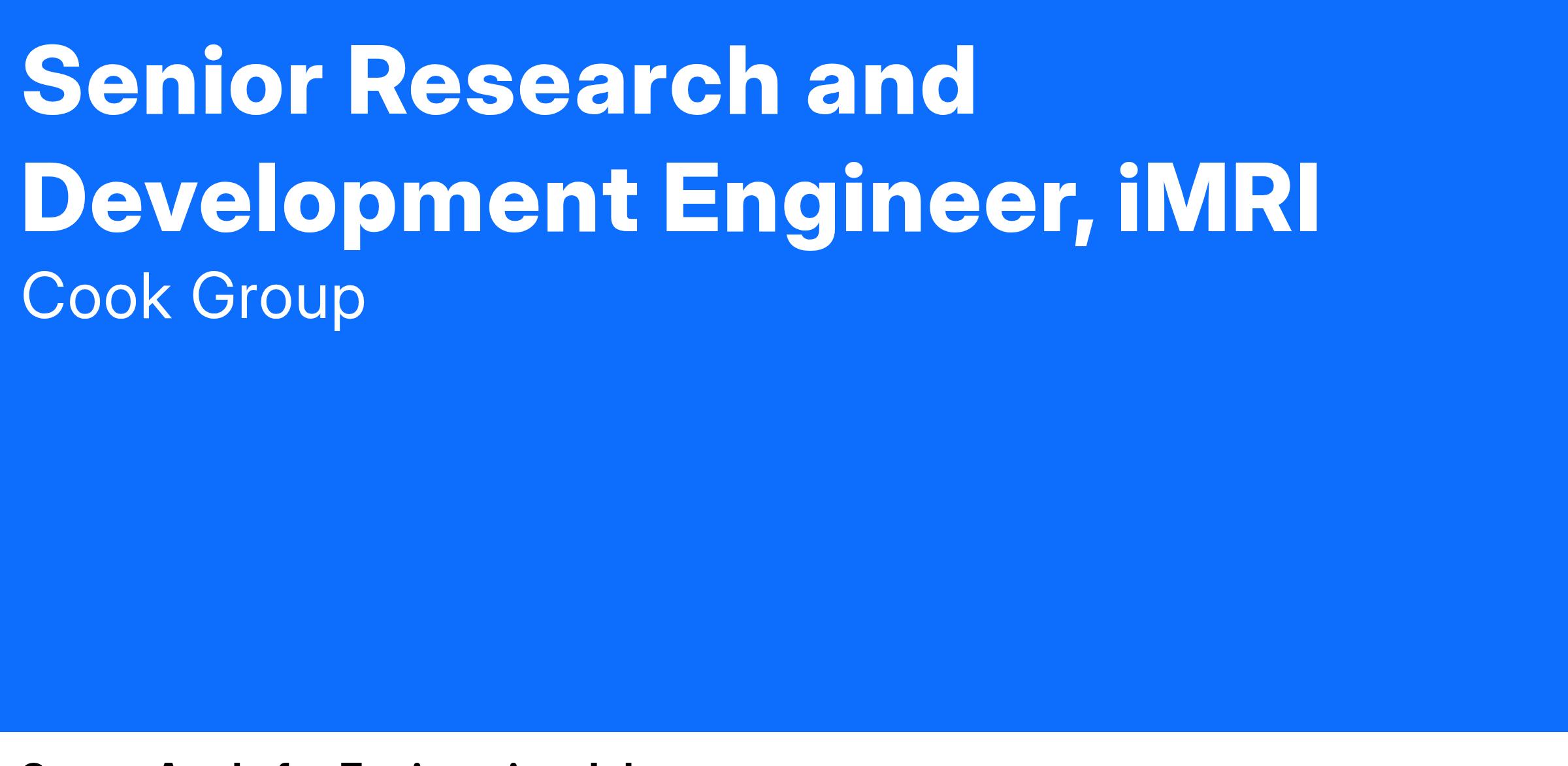 The Senior Research and Development Engineer is a leading technical contributor tasked with researching complex technical problems and conceiving new medical products and solutions in support of the innovation plans and portfolio goals of the iMRI Division. The Senior Research and Development Engineer is responsible for the evaluation of new opportunities for innovation and portfolio expansion in iMRI R&D.