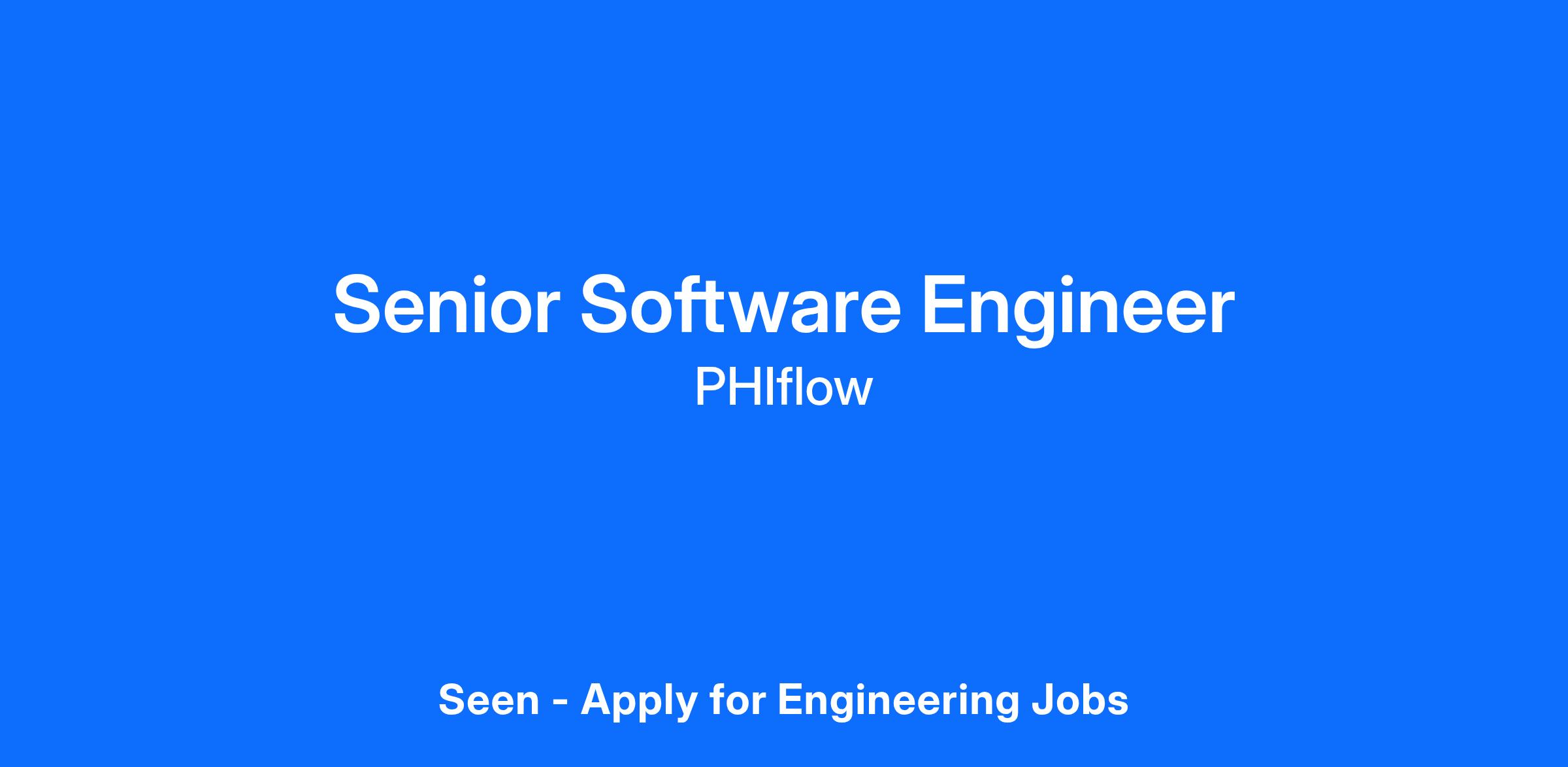 PHIflow is an equal opportunity employer and offers salaries commensurate with qualifications and experience, complemented by competitive benefits for all employees. The Senior Software Engineer is a full-time position and will be eligible for performance bonuses and stock options based on performance. Position Start date is ASAP.