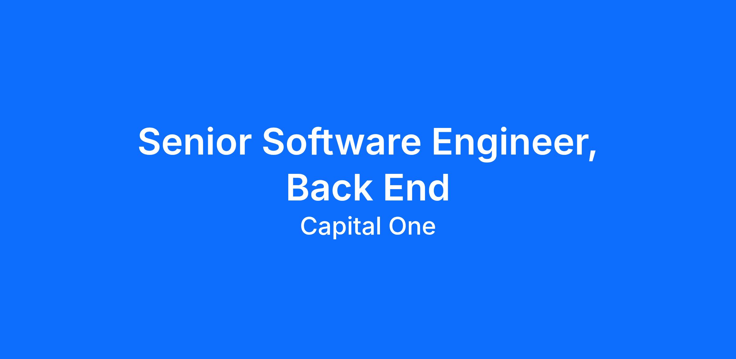 Do you love building and pioneering in the technology space? Do you enjoy solving complex business problems in a fast-paced, collaborative, inclusive, and iterative delivery environment? At Capital One, you'll be part of a big group of makers, breakers, doers and disruptors, who love to solve real problems and meet real customer needs. We are seeking Back End Software Engineers who are passionate about marrying data with emerging technologies. As a Capital One Software Engineer, you’ll have the opportunity to be on the forefront of driving a major transformation within Capital One.