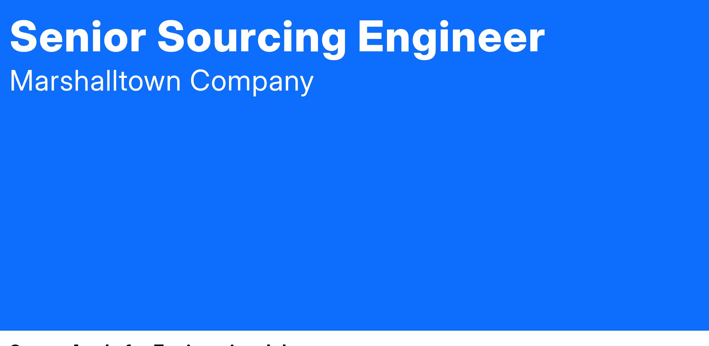 MARSHALLTOWN, the leading manufacturer and distributor of construction tools is seeking a Senior Sourcing Engineer for our Fayetteville, Arkansas facility.