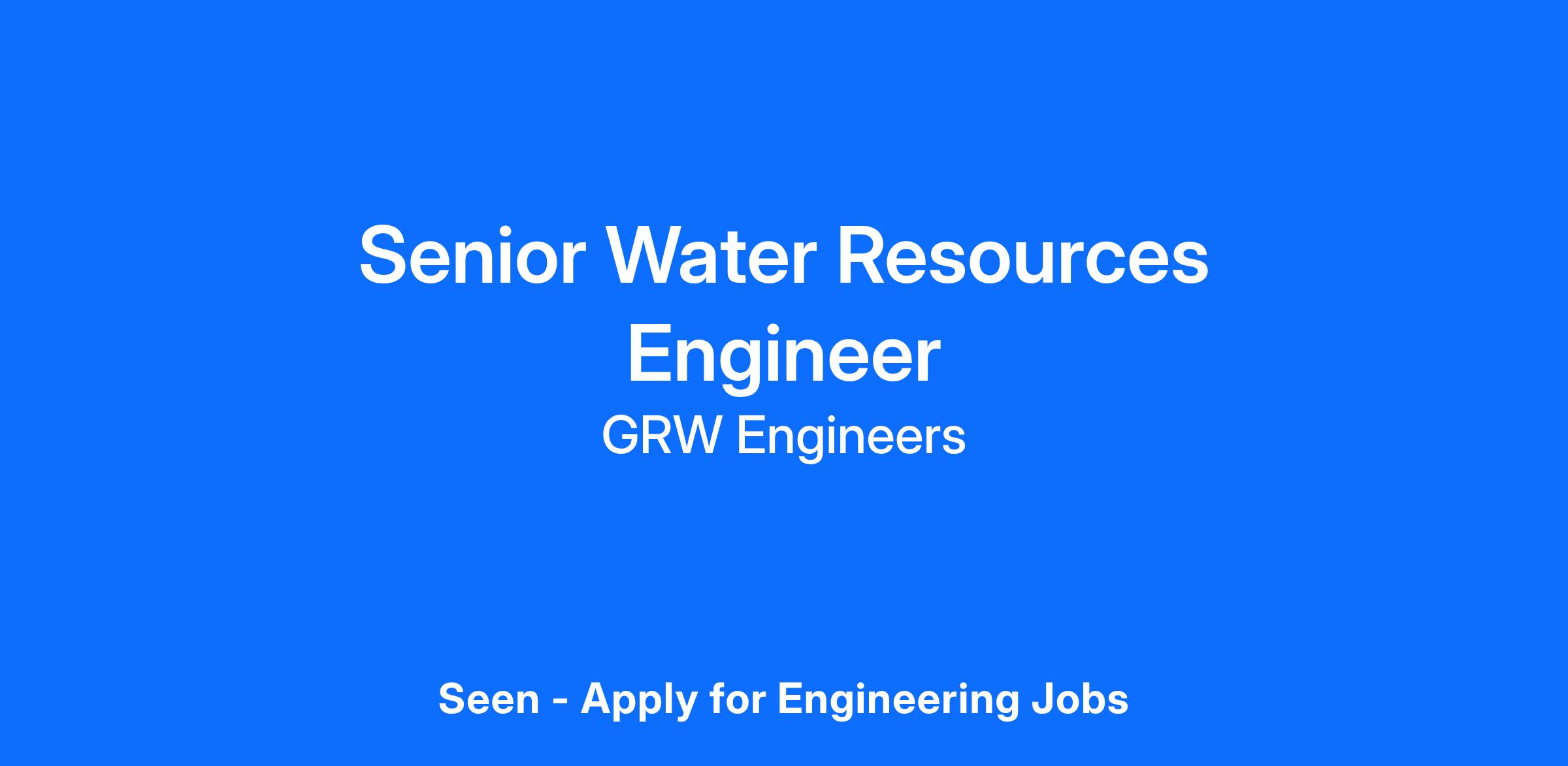 GRW Engineers, Inc. is seeking a Senior Water Resources Engineer in our Nashville office to build and maintain a portfolio of profitable water/wastewater utilities projects in support of GRW's Tennessee water resource engineering team.