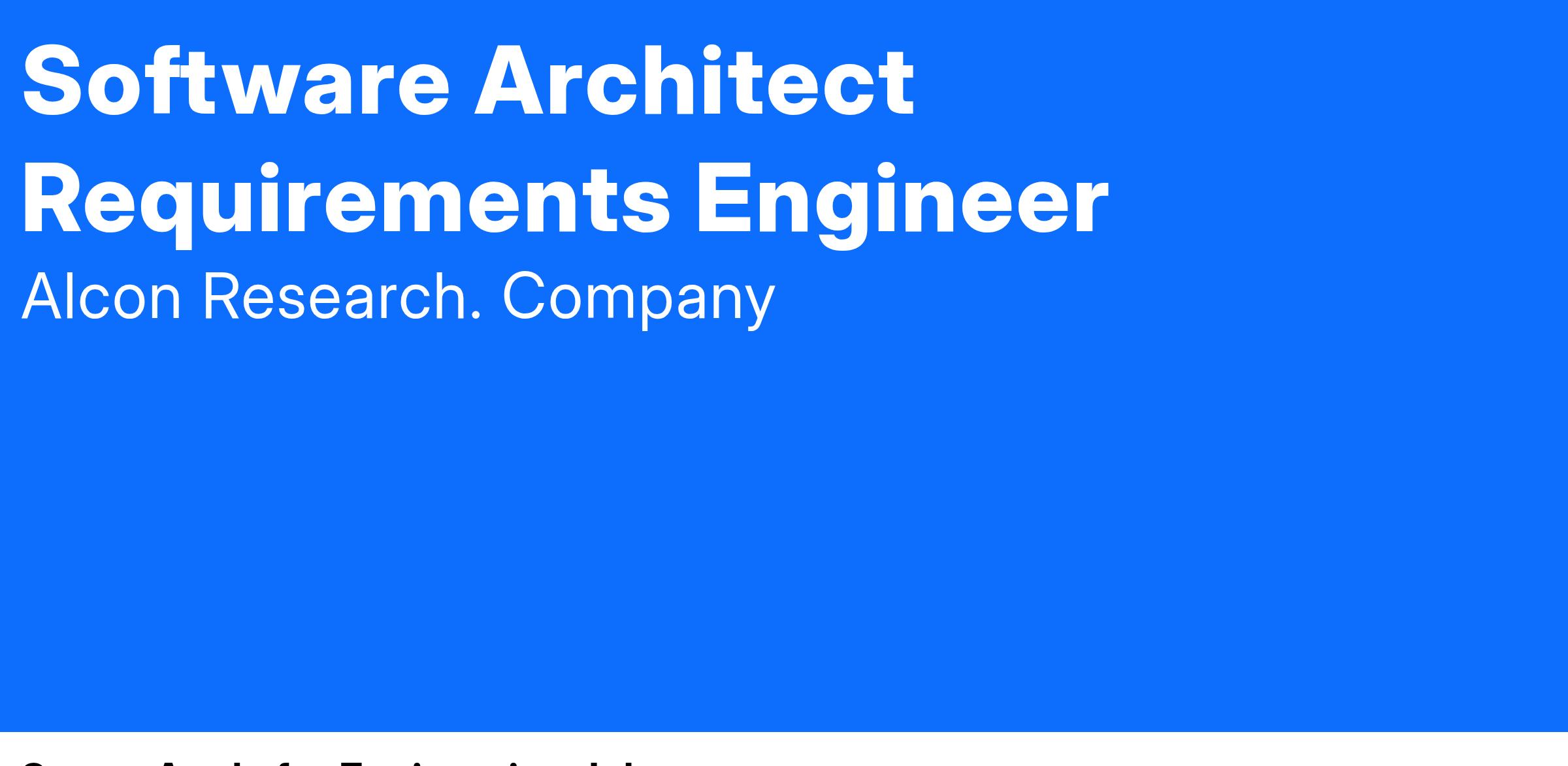 The SW Architect Requirements Engineer is responsible for leading the software engineering efforts to develop software, services, and solutions for Alcon Interoperability Program.