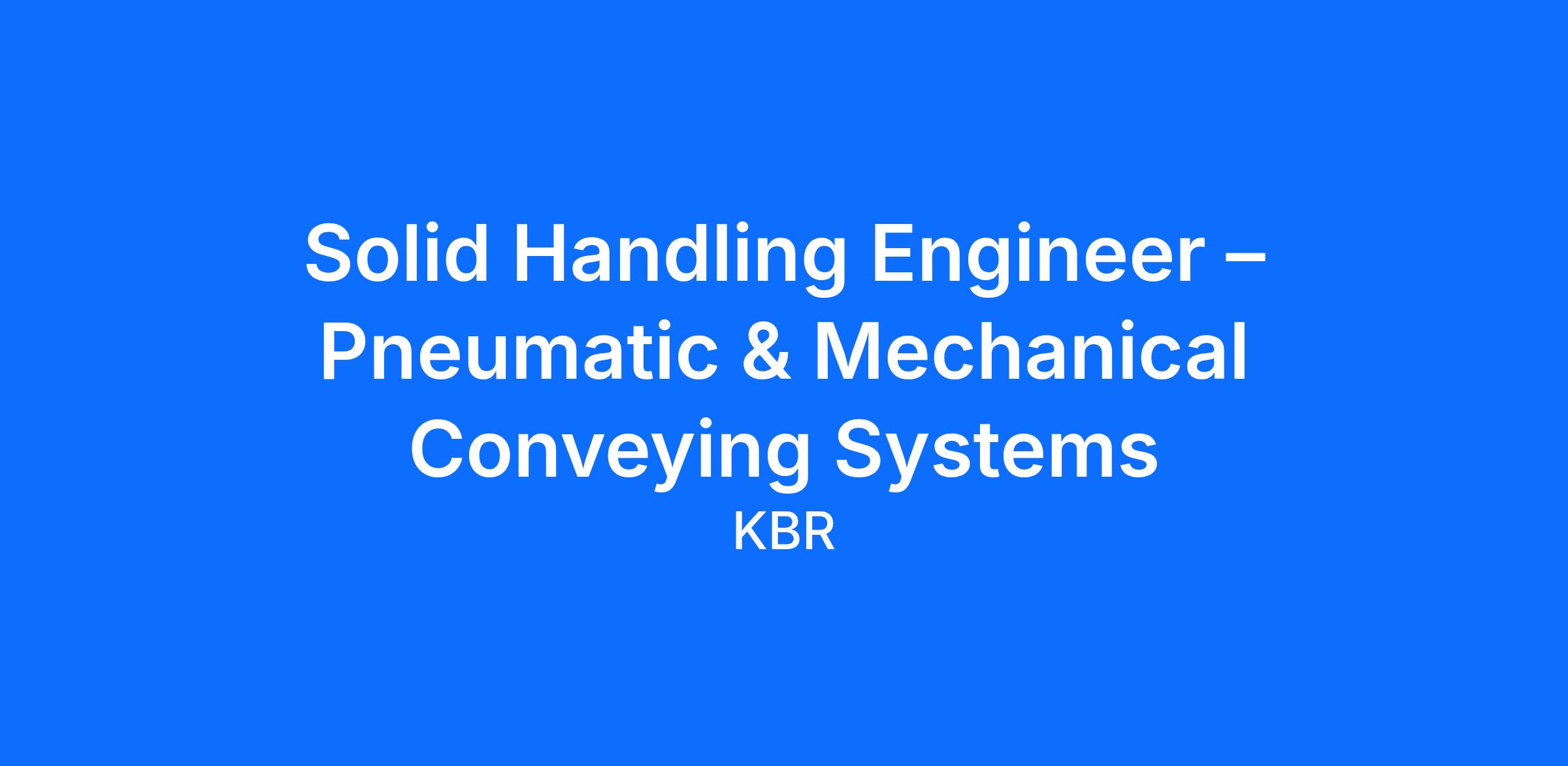 KBR is looking for a Solid Handling Engineer – Pneumatic & Mechanical Conveying Systems with the responsibility for the engineering, design, specification, and evaluation of bulk material handling systems, including pneumatic conveying systems and traditional mechanical conveying equipment such as belt conveyors, screw conveyors, bucket elevators, and feeders. The role requires hands-on experience in developing General Arrangement (GA) drawings, equipment datasheets, technical requisitions, bid evaluations, and supporting projects from concept through detailed engineering and commissioning.