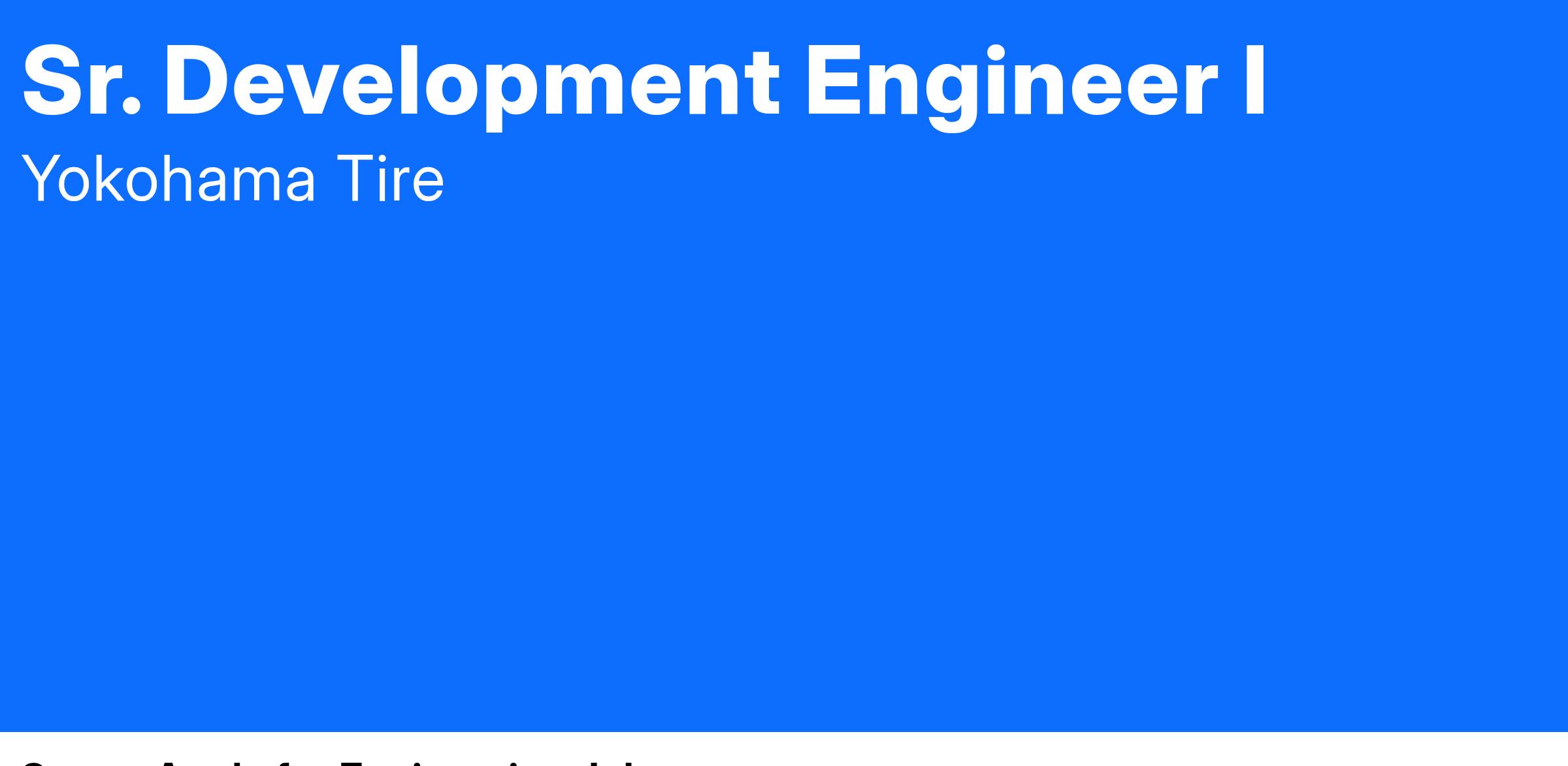 The Senior Development Engineer I has mastered the Development Engineer II duties and responsibilities, and requires knowledge of advanced engineering principles and methods related to tire design and analysis to meet target objectives. The Sr. Development Engineer I is responsible for all phases of replacement tire development including the design of experiments, testing and analysis of results. Assignments may include challenging projects that cover both replacement and original equipment tires which involve a close partnership with outside customers to achieve desired objectives.
