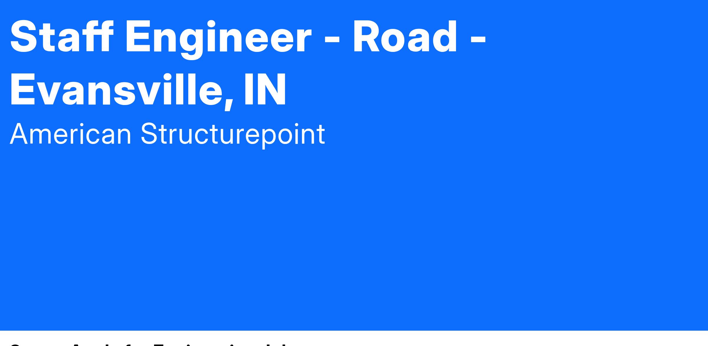 American Structurepoint is an equal opportunity employer and all qualified applicants will receive consideration for employment without regard to race, color, religion, sex, sexual orientation, gender identity, national origin, disability status, protected veteran status or any other characteristic protected by law.