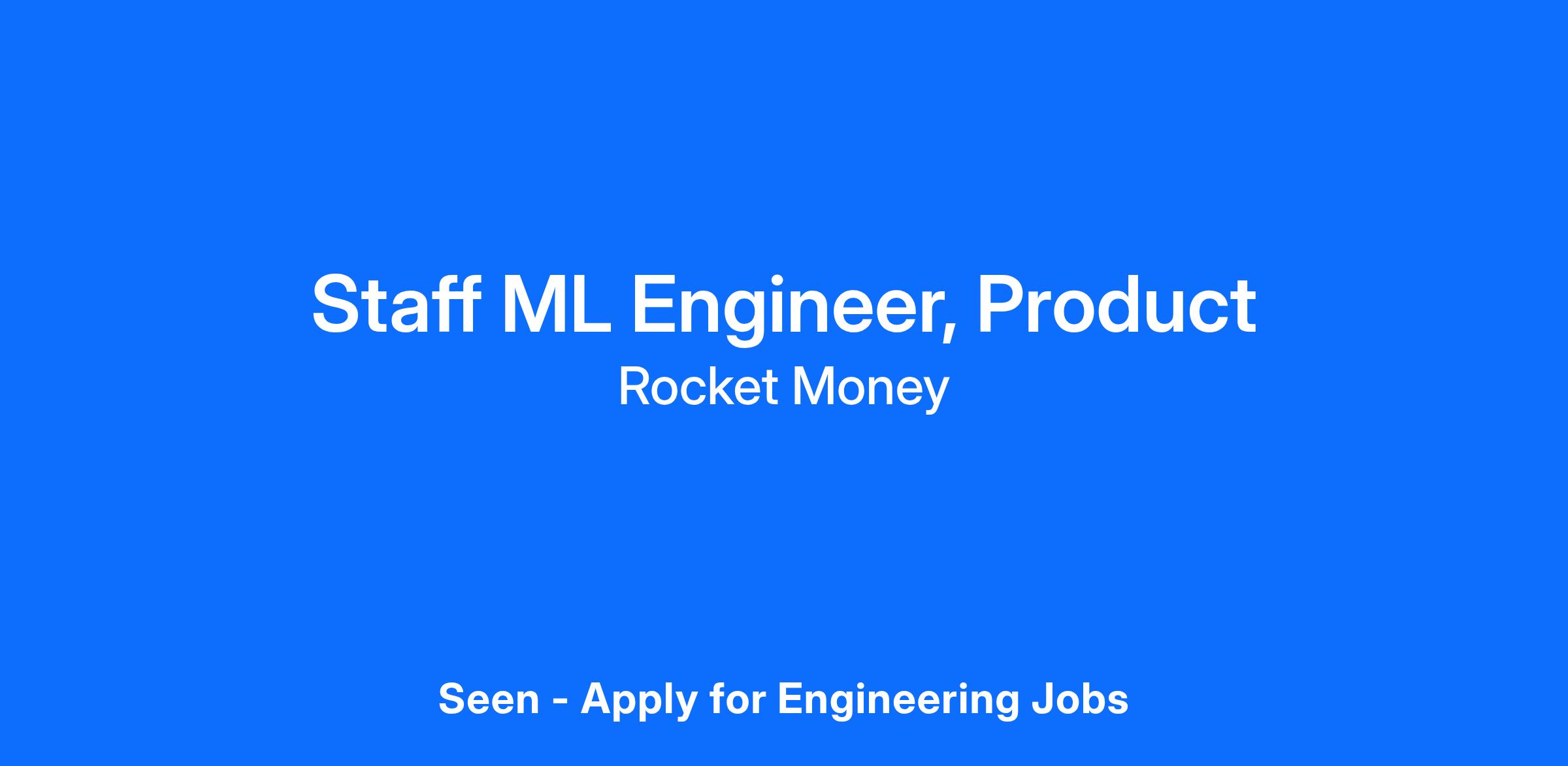 Machine Learning Engineers at Rocket Money further our mission by building products that deepen customer relationships with our many financial products. Our work ranges from transaction enrichment to personalization to cross-functional tools that support various AI product initiatives. We work closely with product teams to develop features that help customers understand, track, and improve their personal finances. We have a strong preference for team players that are comfortable collaborating across teams, know how to support strategy with ML and AI powered user experiences, can deliver scalable and high quality user experiences, and understand the effects of their products on end users. At the Staff level, Machine Learning Engineers are expected to build broad expertise into our products and the ML solutions that power them as well as drive technical progress for the team.