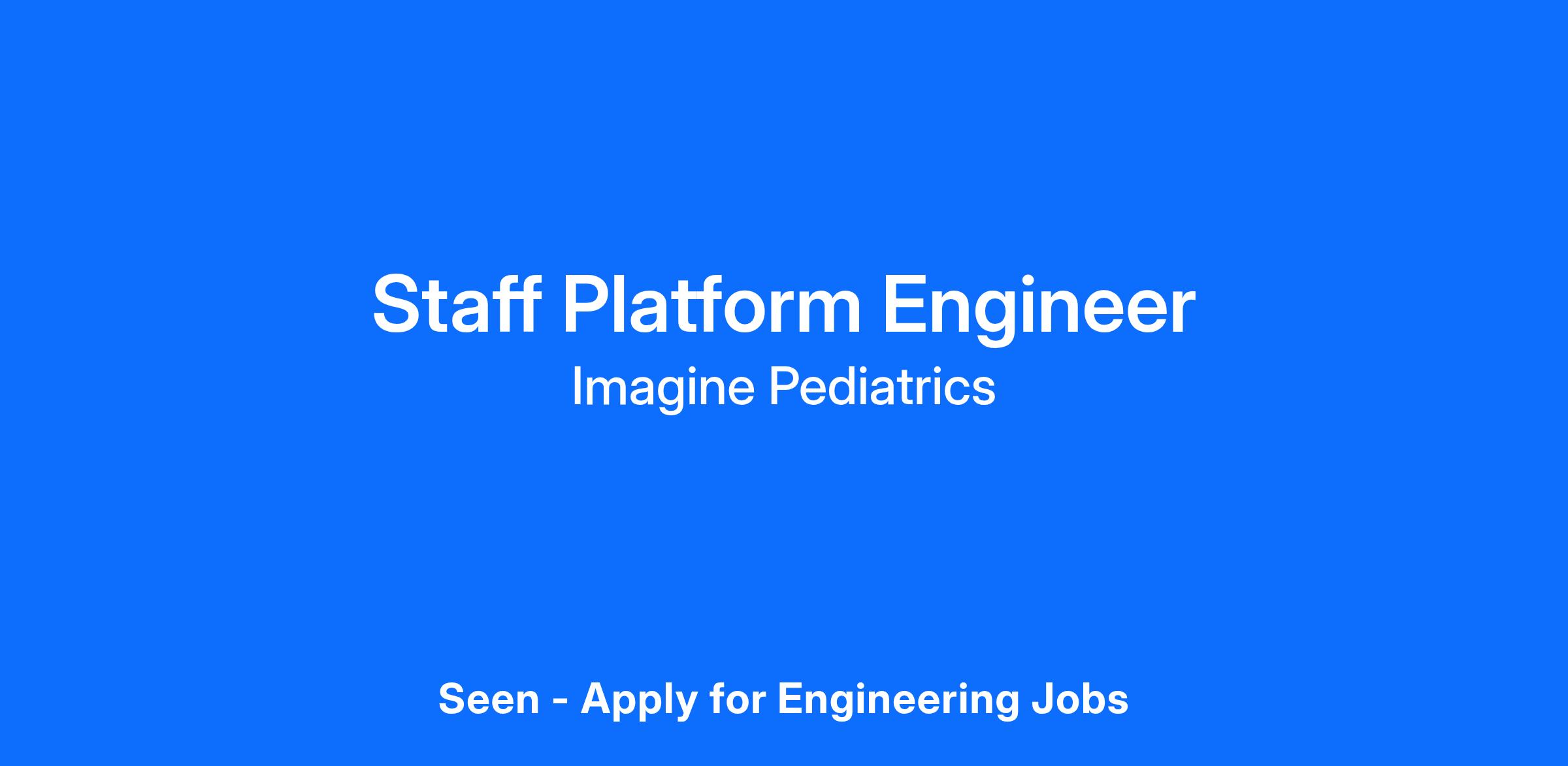 As a Staff Platform Engineer at Imagine Pediatrics, you will be instrumental in empowering our organization to deliver a seamless, reliable, scalable care platform. You will partner with stakeholders on Product Engineering and QA to define and implement the next chapter of Imagine Pediatrics' technical infrastructure. You will: