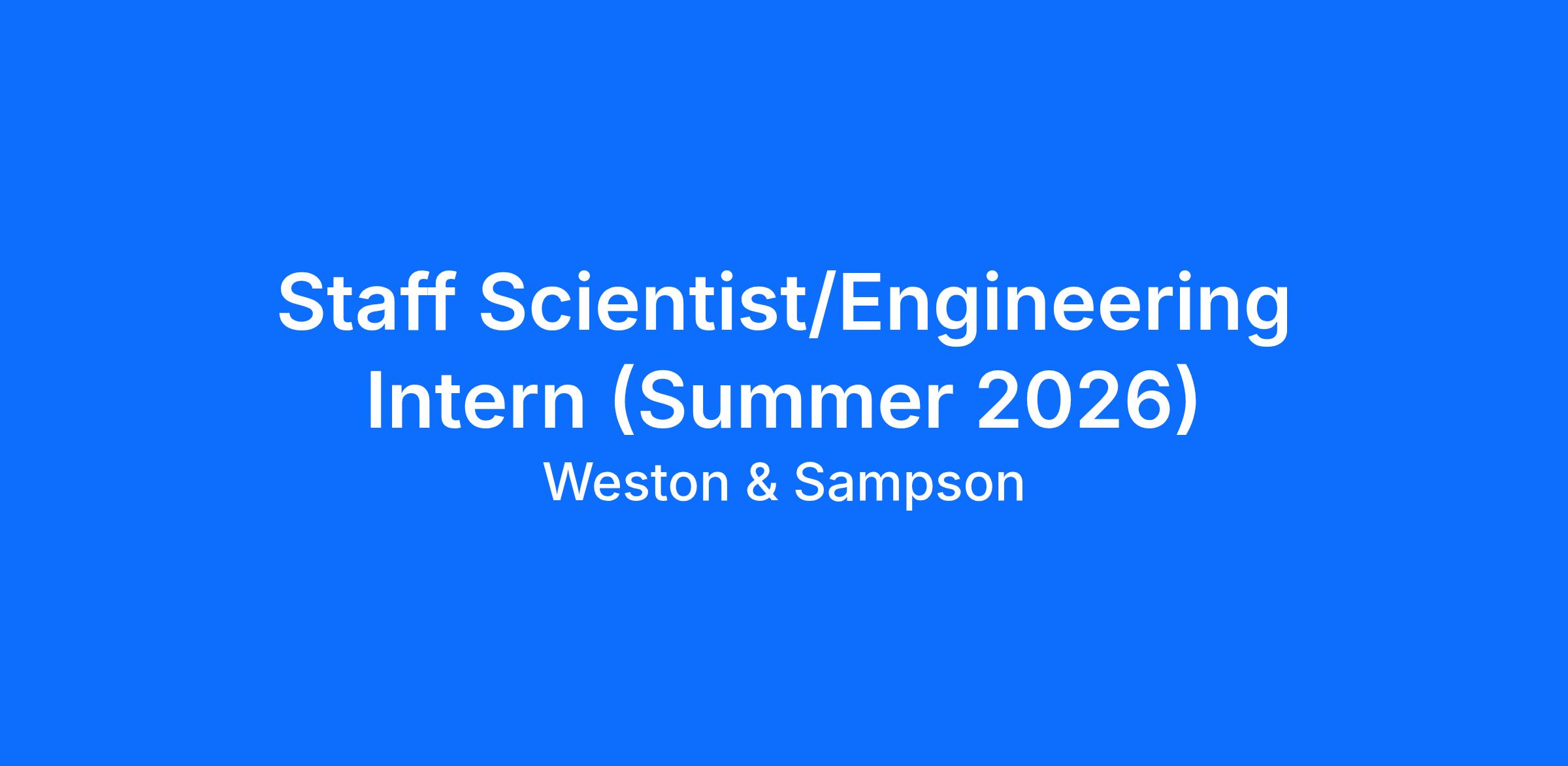 Weston & Sampson’s climate resilience team is rapidly growing, and we are seeking a Summer 2026 Staff Scientist/Engineering Intern (Co-Op) to join us! Our team is made up of professionals in engineering, environmental science, planning, and geospatial technologies who collaborate on a wide variety of projects. These include resilient waterfront and park design, transportation and utility infrastructure, watershed and stormwater management, and municipal climate action planning.