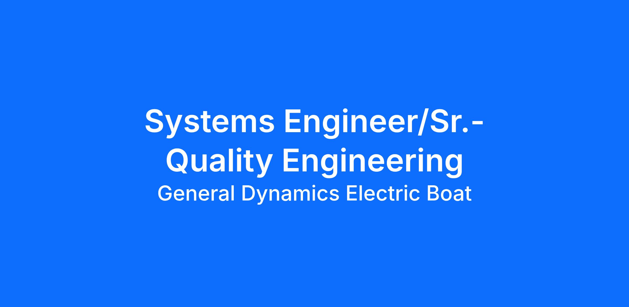 Quality Assurance Engineers (QAEs) specialize in improving processes and systems to ensure quality and efficiency within Electric Boat. As Electric Boat continues to execute on our Columbia and Virginia programs, members of this team will be key contributors to ensure their success. QAEs routinely work cross functionally with internal and external customers to ensure a quality product. This position will report to a Quality Assurance Engineering Supervisor in Groton.