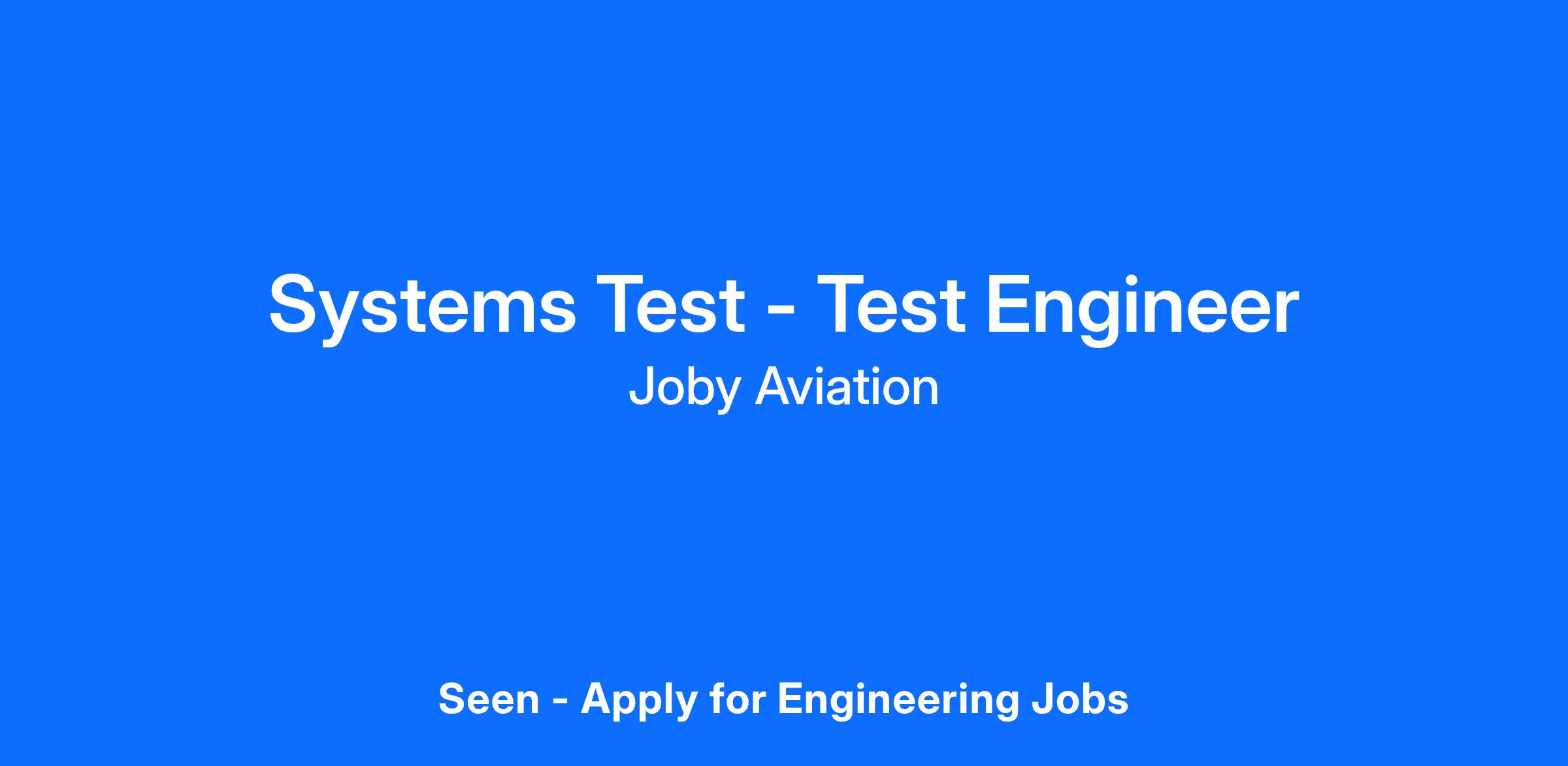 Joby Aviation is seeking a highly organized, passionate individual to join our System Testing team. As part of this team, you will perform structural, environmental, and functional tests of flight-critical components and subsystems for our VTOL electric aircraft. The data gathered in our integrated test labs will drive hardware design improvements and accelerate the path to production-ready components. Your work will play a crucial role in ensuring our aircraft meet the rigorous safety and performance standards required for FAA certification, a key milestone in bringing our innovative technology to market. The Joby team is made up of extremely talented, hardworking, proactive, and hands-on individuals, operating in a very fast-paced and rewarding environment. We are looking to expand this team with like-minded individuals eager to leave a mark in the aviation industry. This position will split time between our Systems Test facilities in Santa Cruz, CA and Marina, CA.