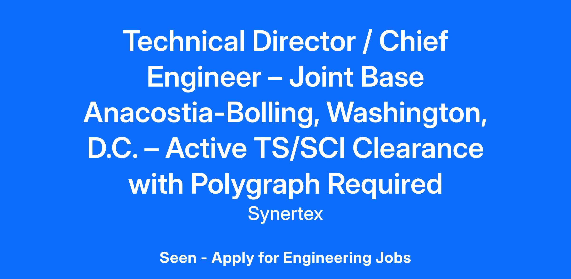 Lead the engineering vision that drives mission success. Apply today and become part of Synertex LLC's legacy of innovation, leadership, and technical excellence.