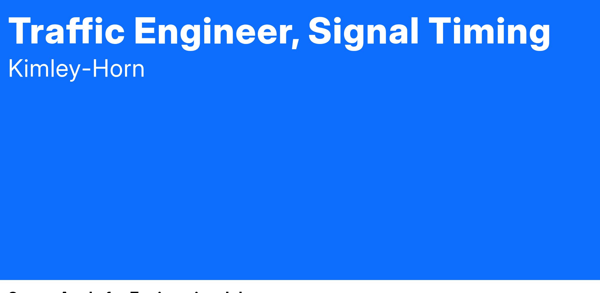 • 4+ years of relevant engineering experience in signal timing, traffic operations, traffic engineering and design and/or ITS planning and design