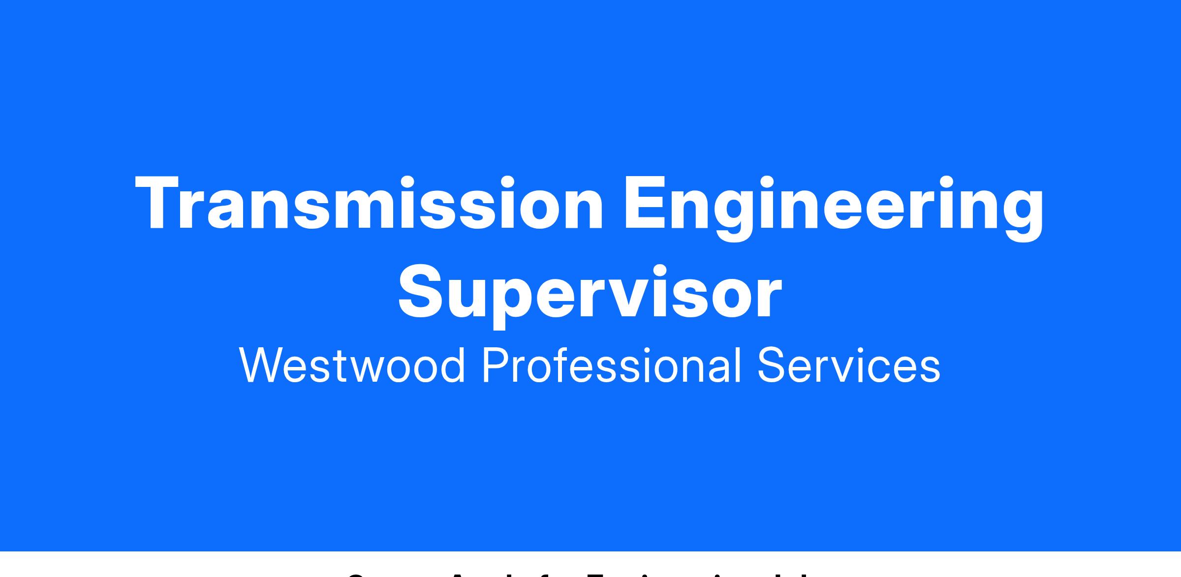 Westwood Professional Services, Inc. is seeking a Transmission Engineering Supervisor to join our team in our team. Westwood has a highly experienced and dynamic team of individuals dedicated to providing high-level professional services to our clients. The Transmission Engineering Supervisor is primarily responsible for supervising a staff of technical designers and engineers responsible for the development of engineering designs, cost estimates, and communication of technical and design information to our customers. The supervisor manages and evaluates the performance of assigned technical staff and proactively initiates measures to correct instances of work product not meeting established quality standards. The Transmission Engineering Supervisor ensures compliance with client procedures, design standards, state and federal regulatory requirements, and safety code requirements and, at times, will collaborate closely with engineers performing substation, transmission, renewable energy, power storage, and communication design.
